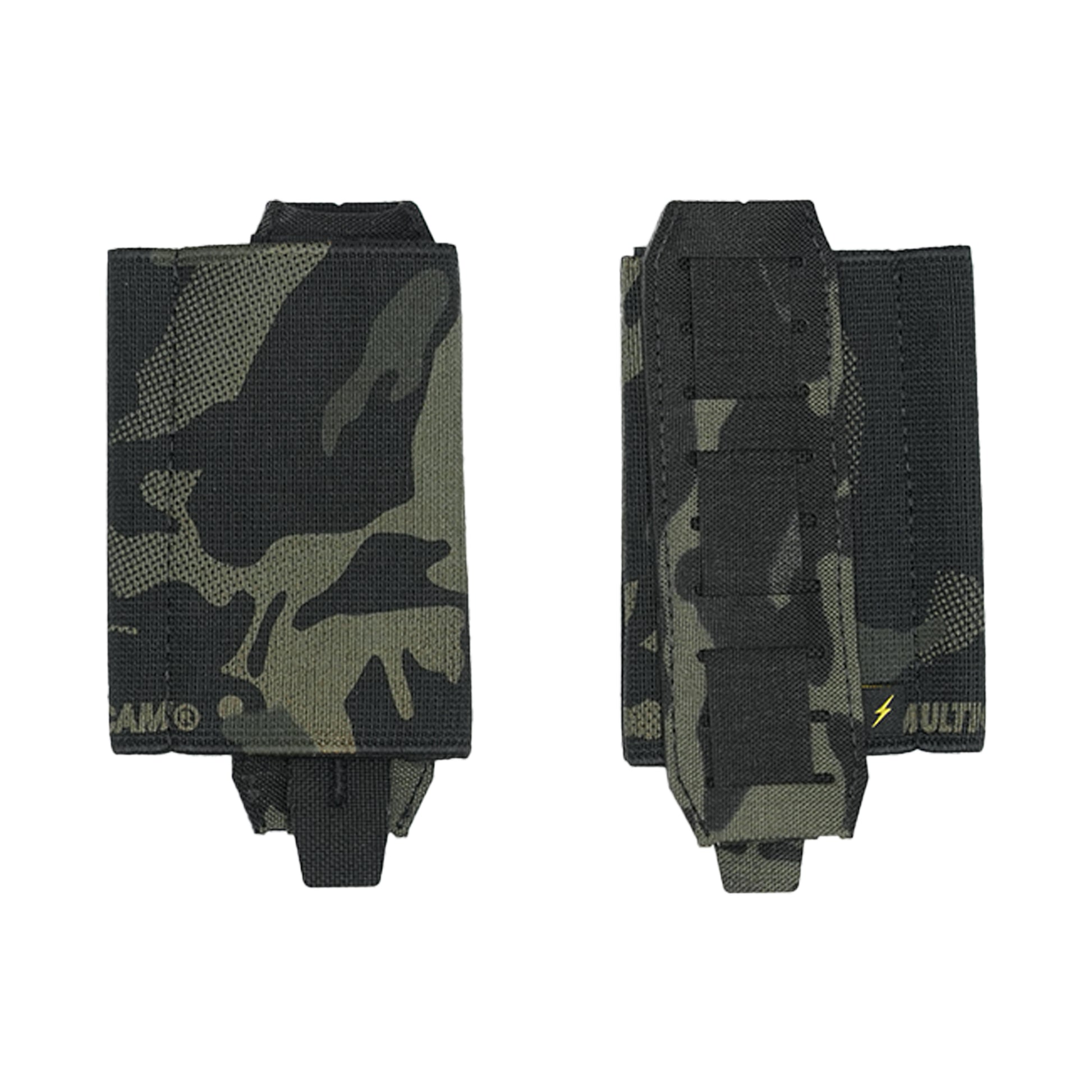 付属のワンラップテープを使用する事で、横向きにベルトに装着出来ます。また、通常のポーチと同様に、モール部分に縦向きにも装着可能です。