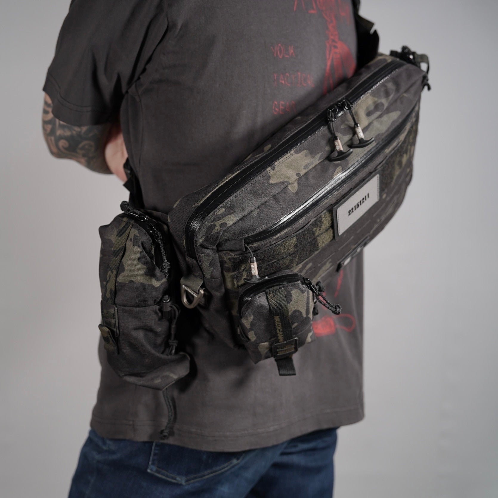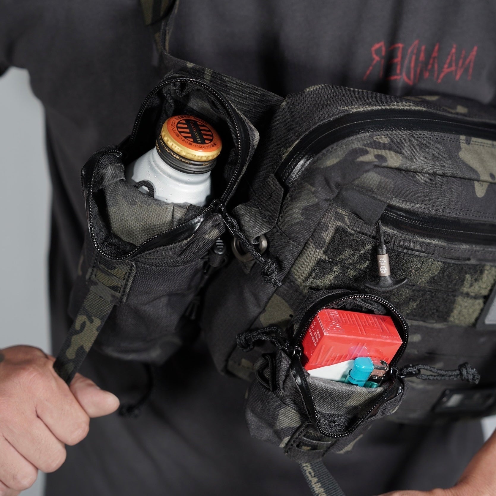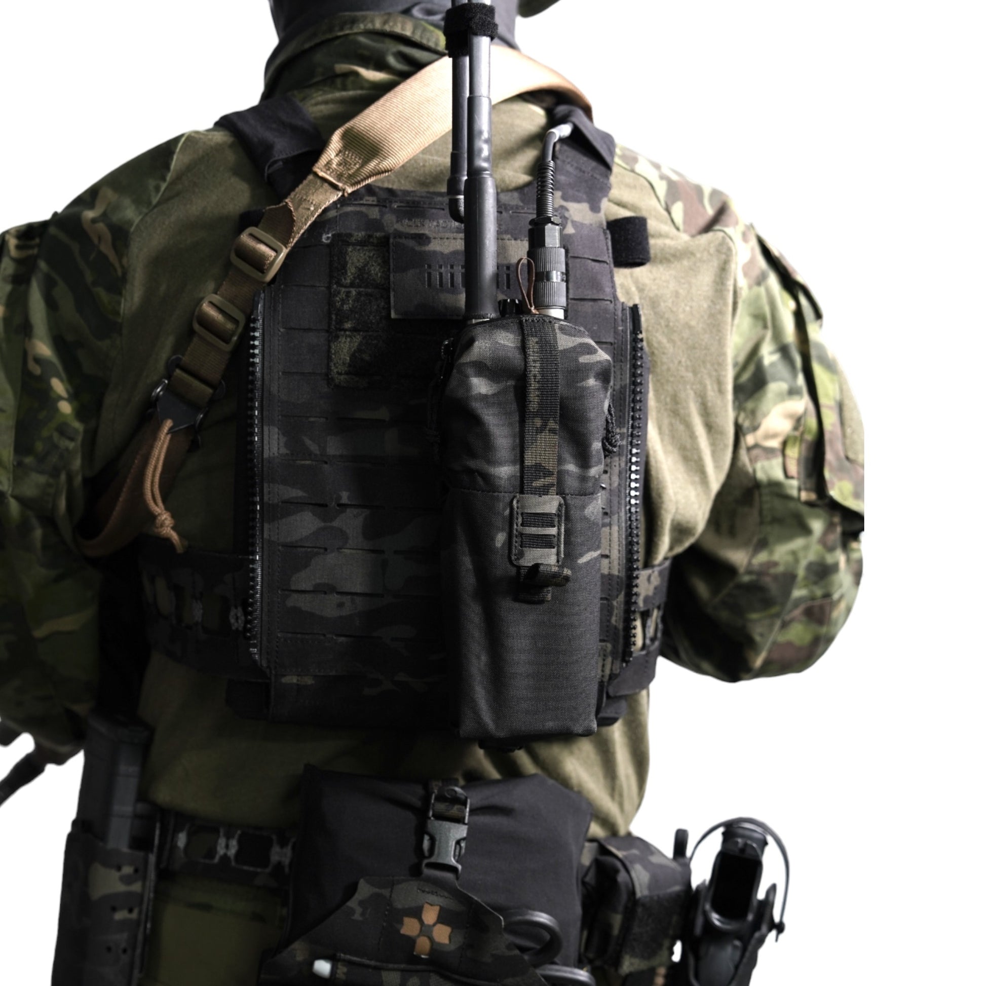 背面はスコードロン製のモールストラップ2列×5段を配備しており、各種装備やバッグのモール部分に装着可能です。