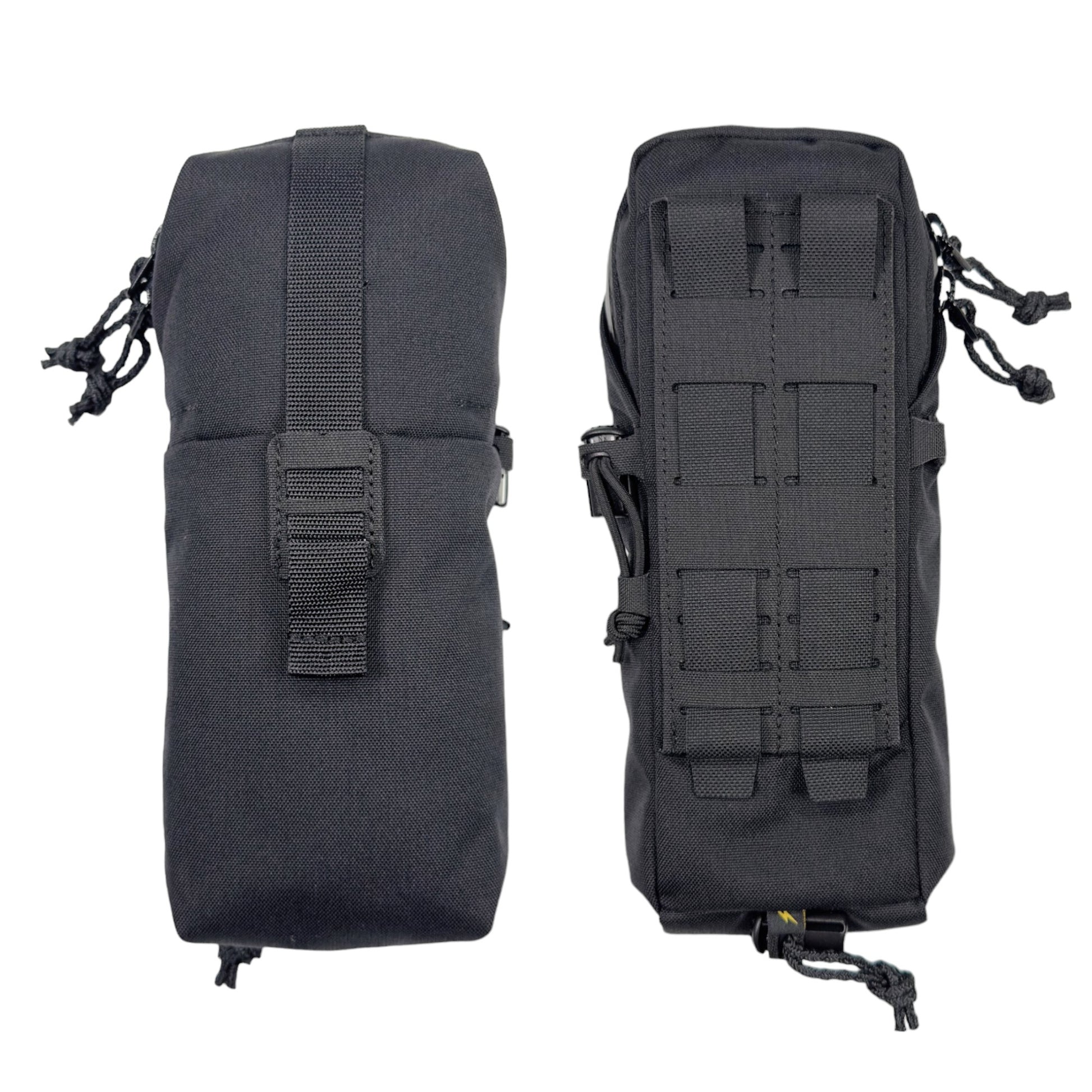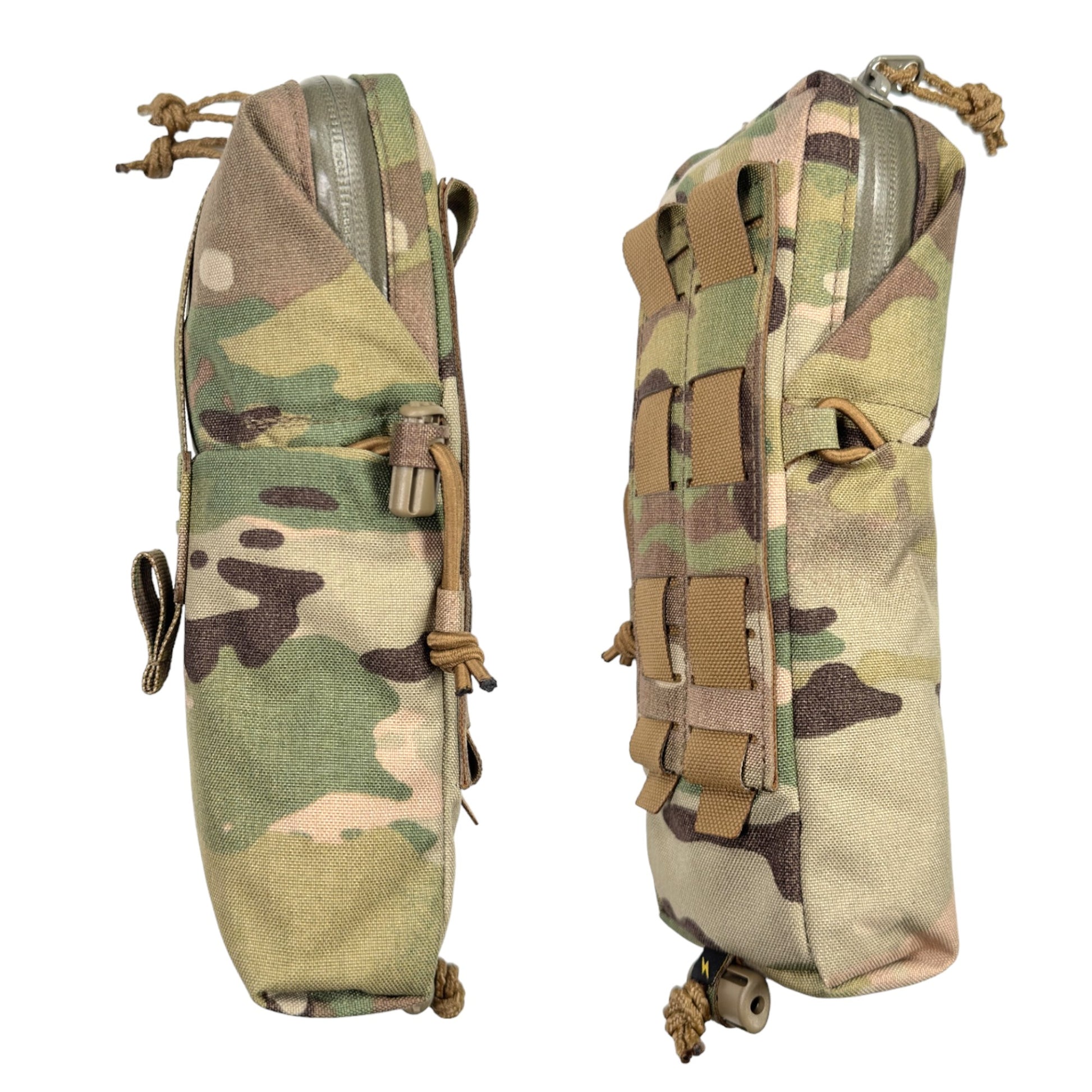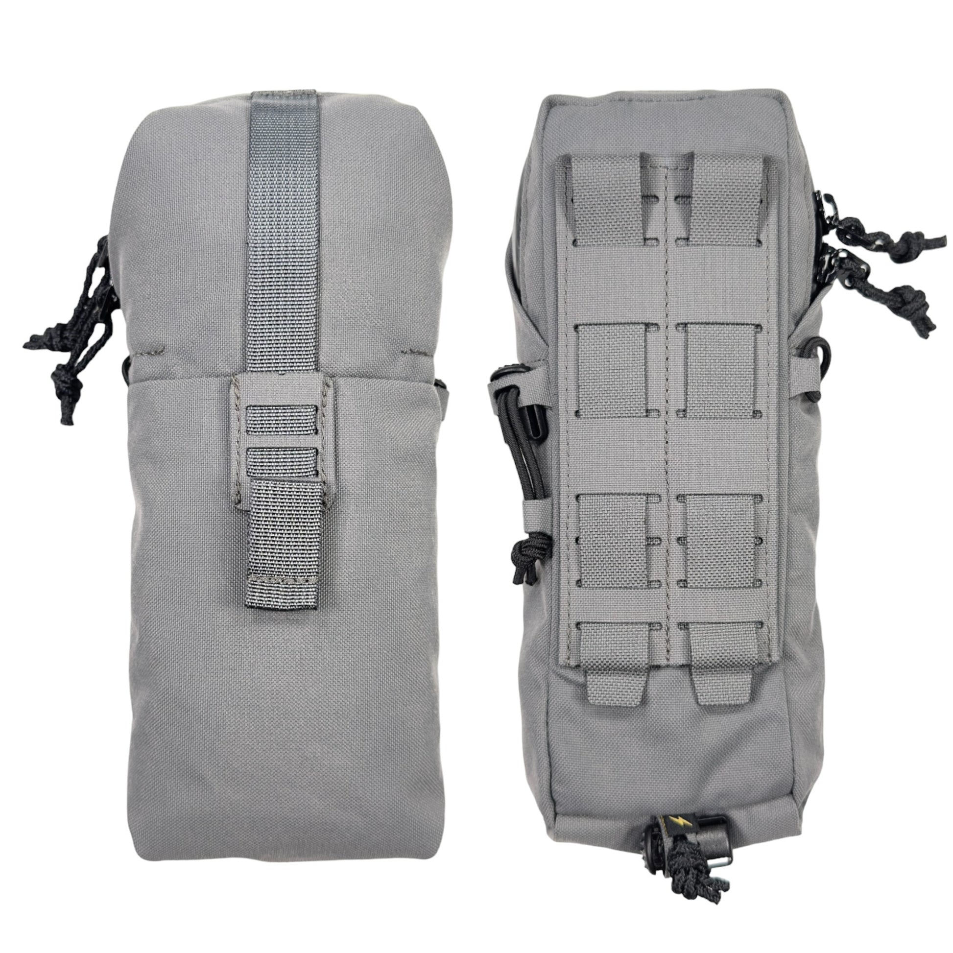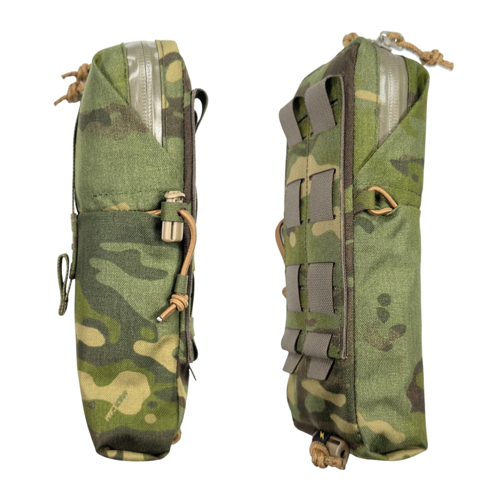 また、収納物の高さが足りず、底に埋まってしまう様な時には、ポーチ内部からドレインホールを通して外部コードロックに固定したロッキングコード絞る事で、最大9cm程のポーチの底上げ(ポーチの長さを縮める)が可能です。