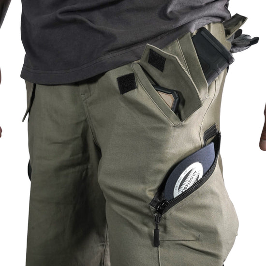 ・カーゴポケットは噛まず滑らかにスライドするコイルジッパーで片手で開け閉め可能。(アールのついた形状で表面がザラっとした滑り止め効果のあるプルタブを採用)