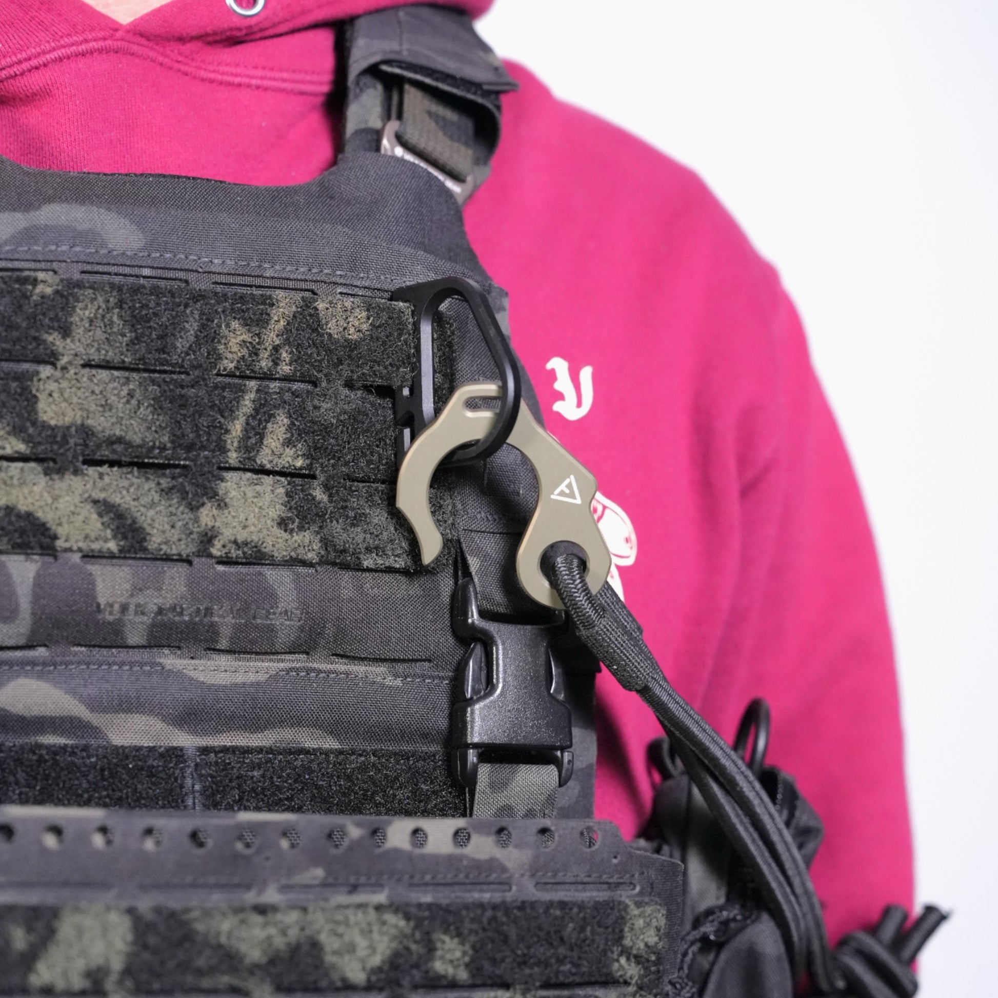 バタフライフックやカラビナと連結する事でウエポンキャッチやガンスリング、簡易ラックや荷物の固定等、アイデア次第で様々な用途に使用可能です。
