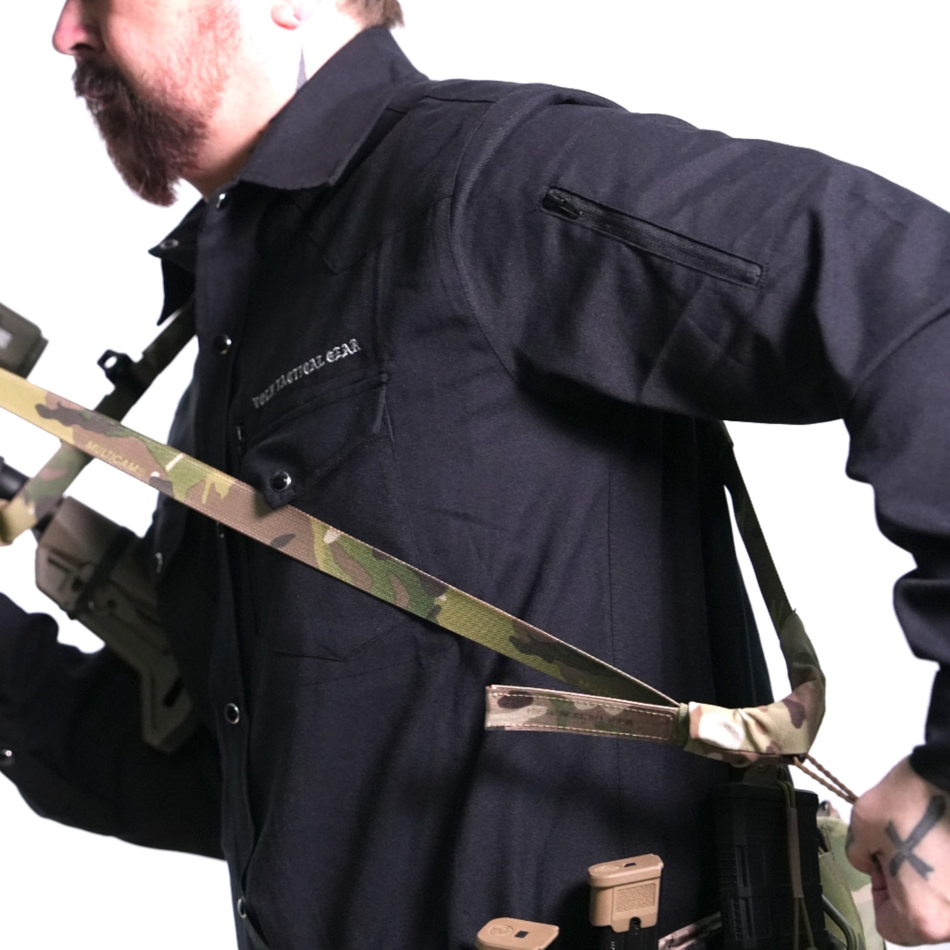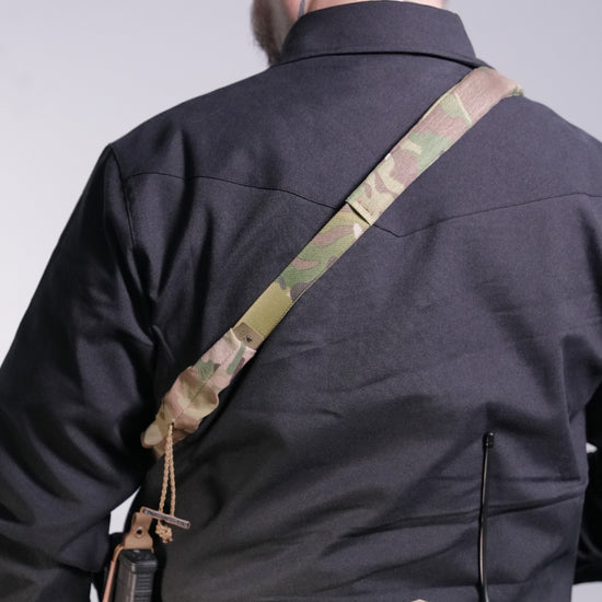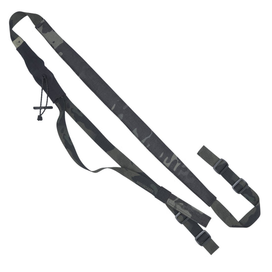 スリング延長側の金属パーツを布で覆い、金属音と装備干渉を大幅低減。 -