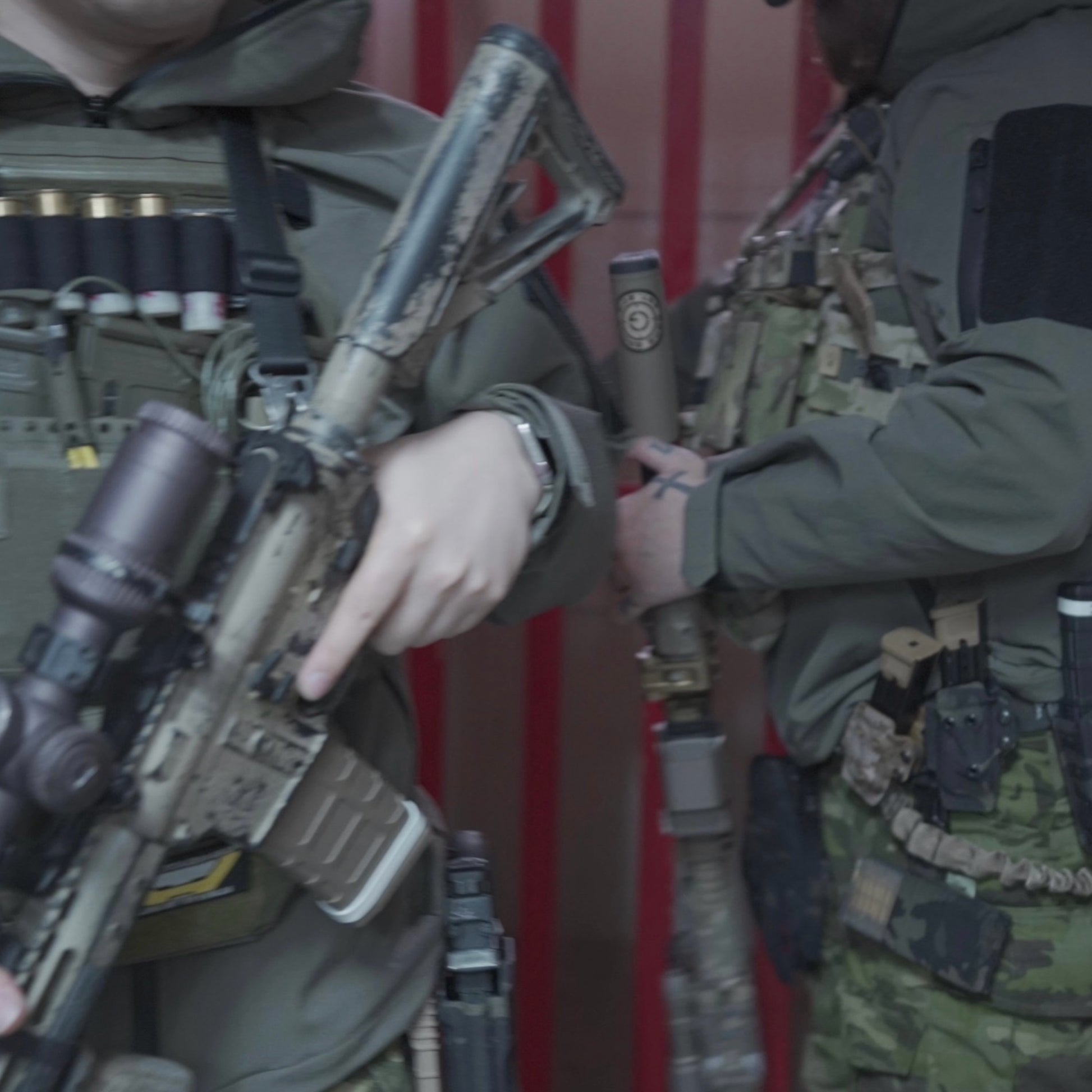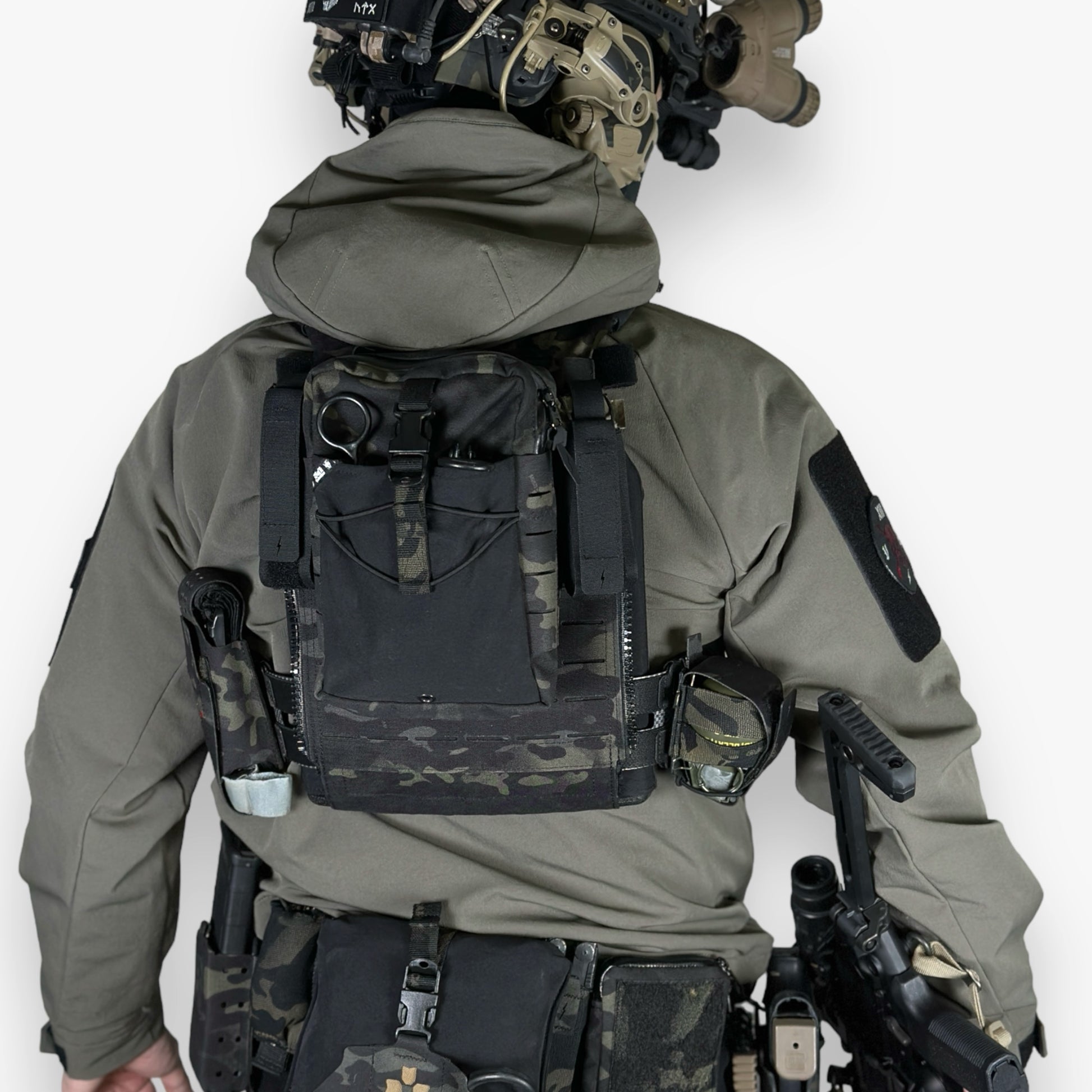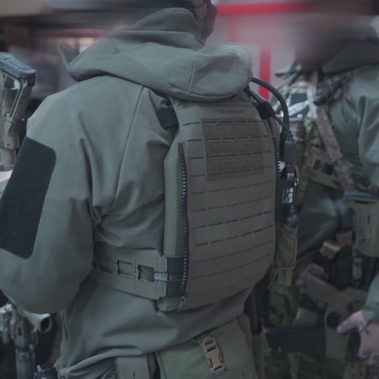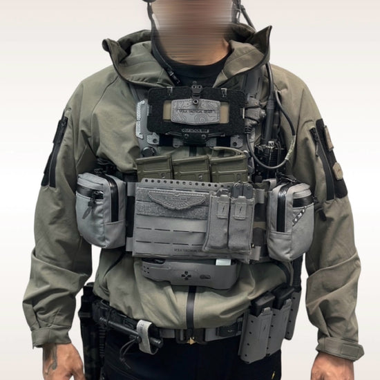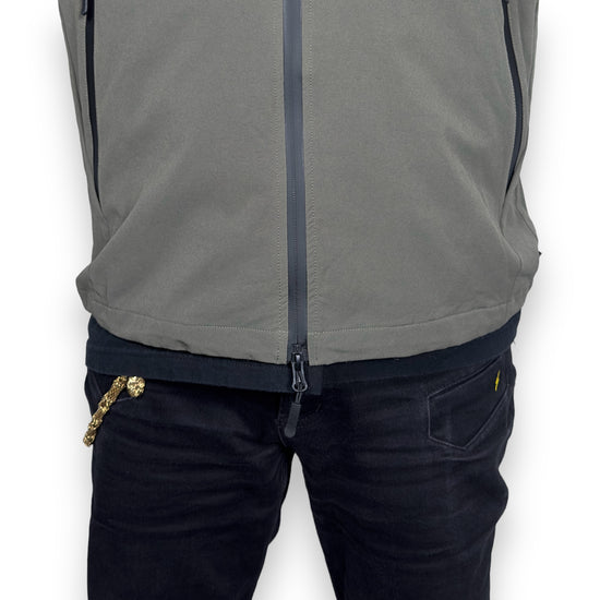 ジッパーは全て防塵、止水ジップ使用でアウトドアでの着用も安心です。引手は表面に滑り止めの処理を施しているので、濡れた手やグローブ着用時にも開閉しやすくなっています。全てのファスナー部分には引手を覆うフタを配備しており、ジップトップを保護します。正面のメインファスナーはダブルジップにより下側からの開閉も可能。ファーストライン装備のドローをスムーズに行う時などにも活用できます。