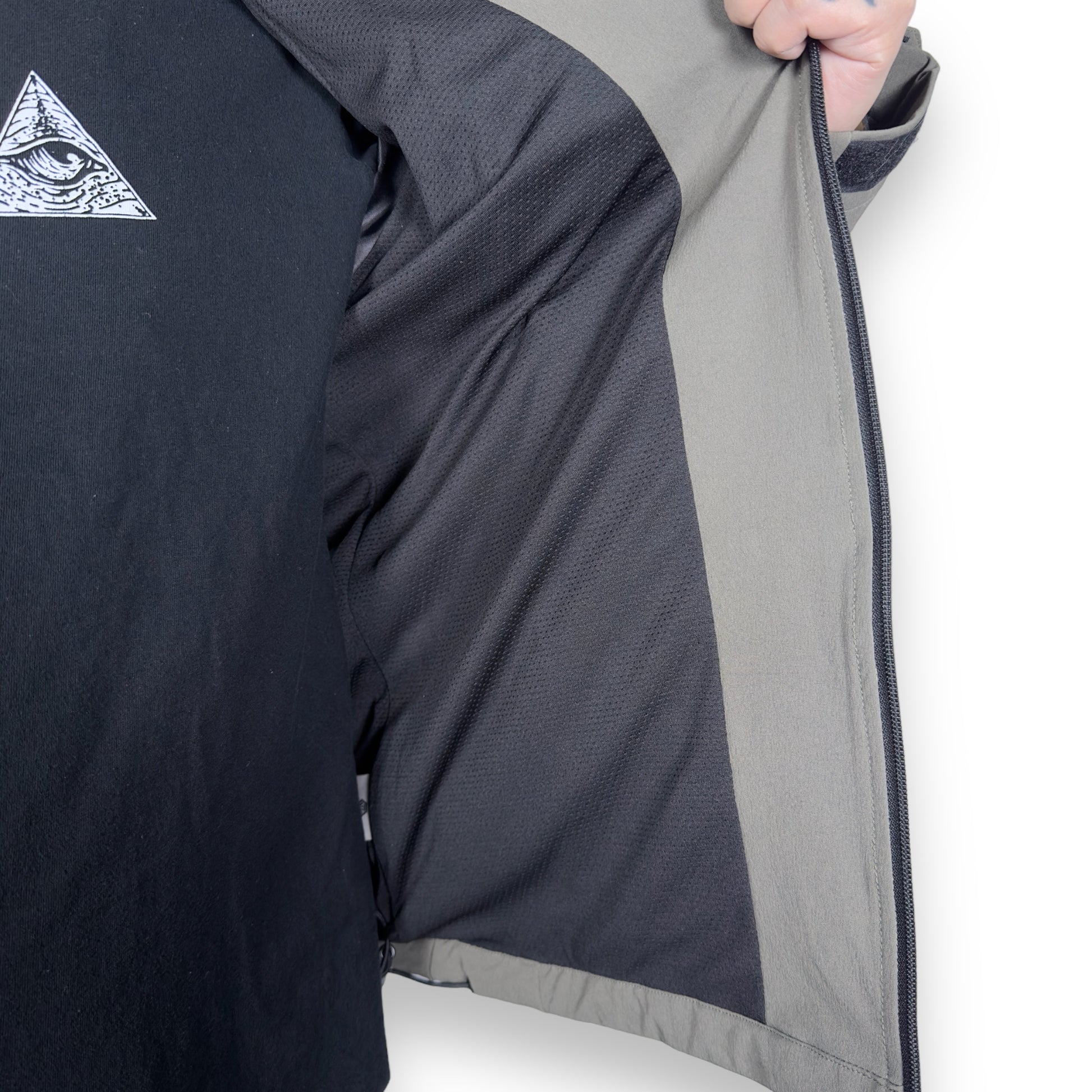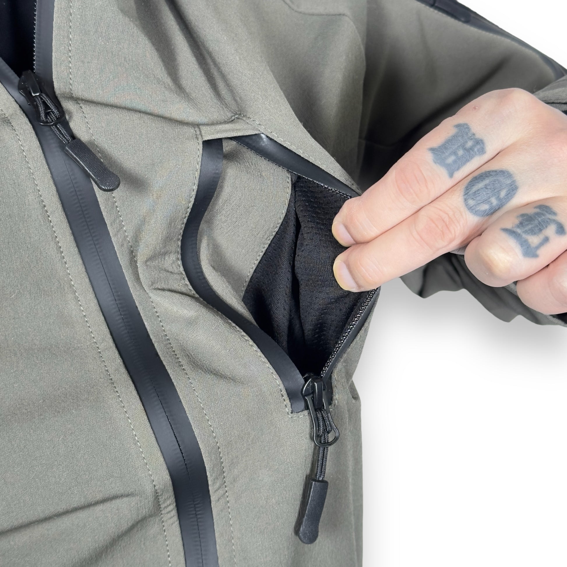 ポケットはメイン×2、両袖、胸部の全5か所あり、メインポケットと胸部ポケットの内部素材にも伸縮性のメッシュ素材を採用しており、ジッパーを開ければベンチレーションとしても機能します。運動で体温が上がったら、汗をかく前にベンチレーションを解放しておけば服の中を快適に保てます。