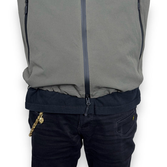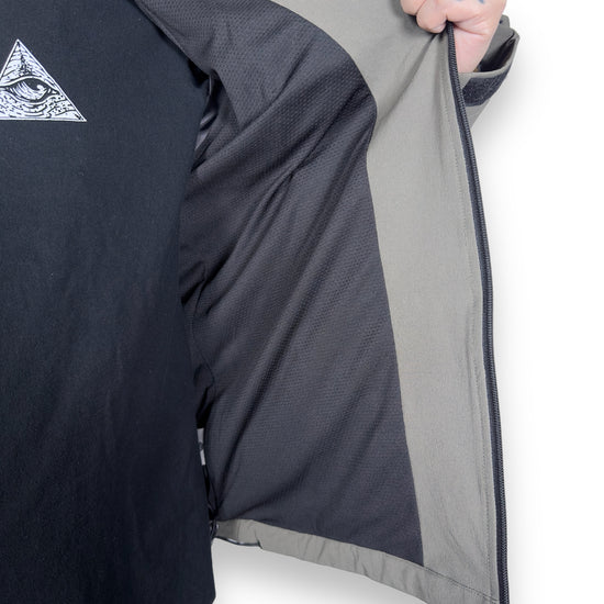 内側の胴体部分は動き易さと通気性を考慮した伸縮性のメッシュライニング。袖部分は腕を通す際や行動時に腕がスムーズに動く様に摩擦係数の少ない滑らかなナイロンライニングを縫製配備しています。インナーレイヤーをTシャツ、スウェット、フリースと変更する事で、夏場以外の長いシーズンでご利用頂けます。