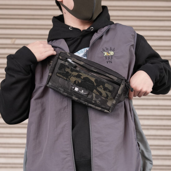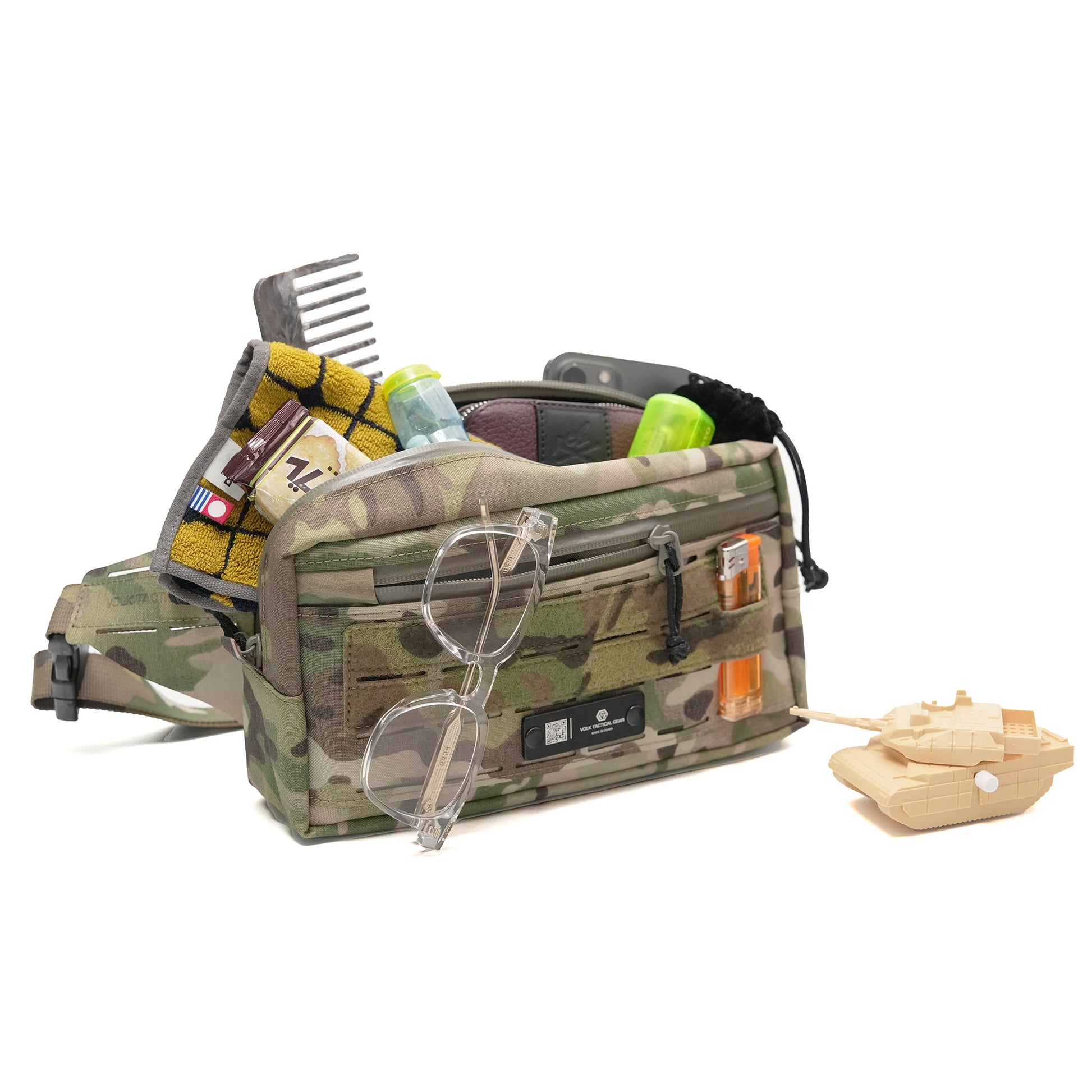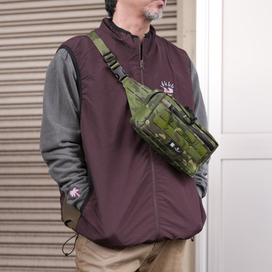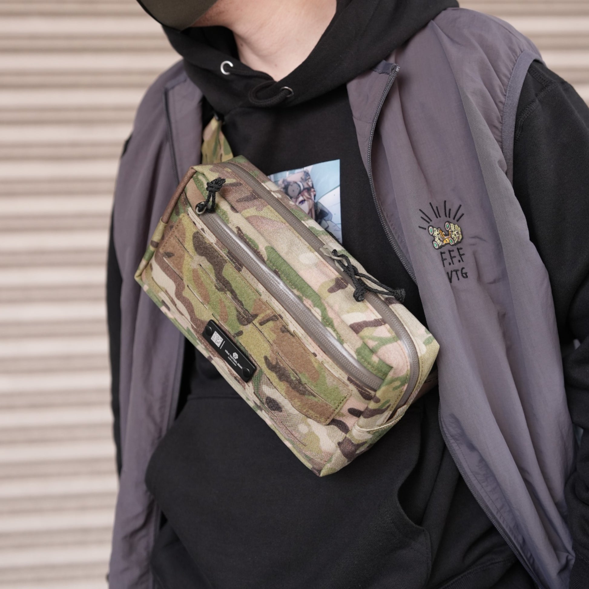 フロントに使用したMOLLE規格のスリットでポーチやツールの増設が自由自在。