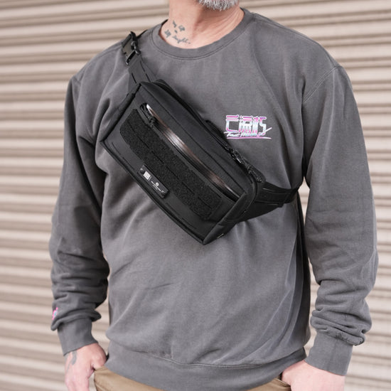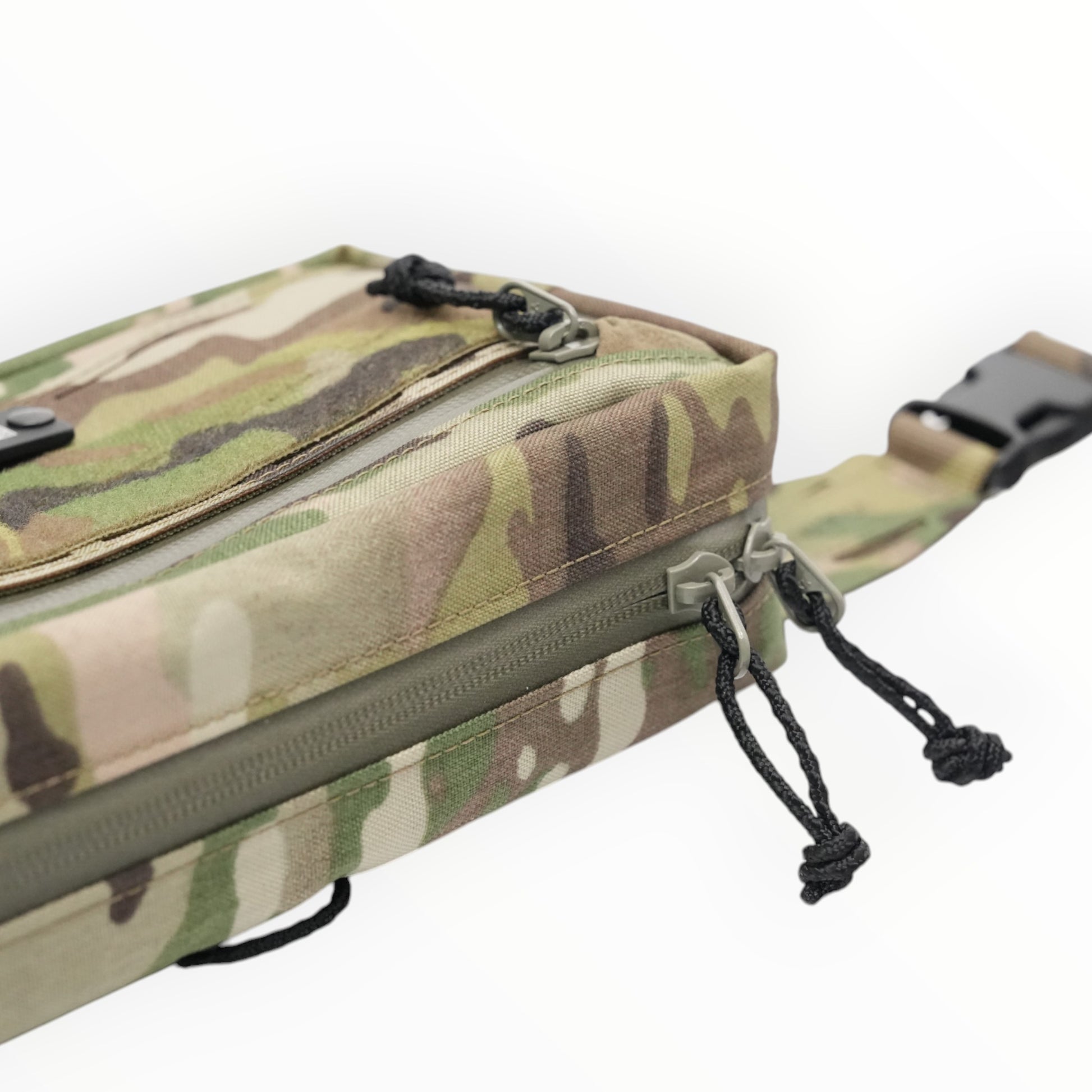 バッグ表面とサイドウイングのモールスリットにはお好みでモール対応のポーチを追加可能です。
