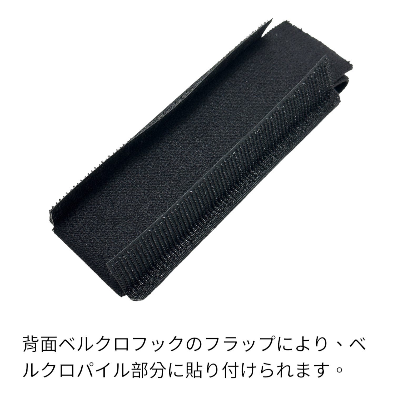 背面のベルクロフックによりベルクロループ部分に貼り付けて携行する事が出来るマルチフィットループです。