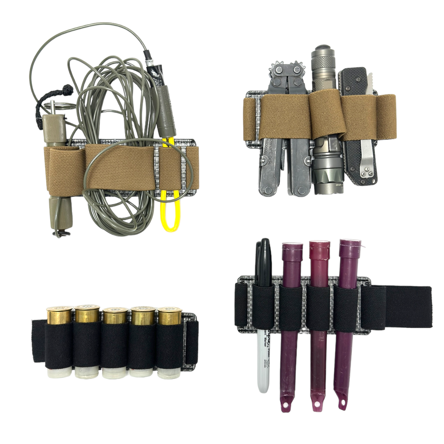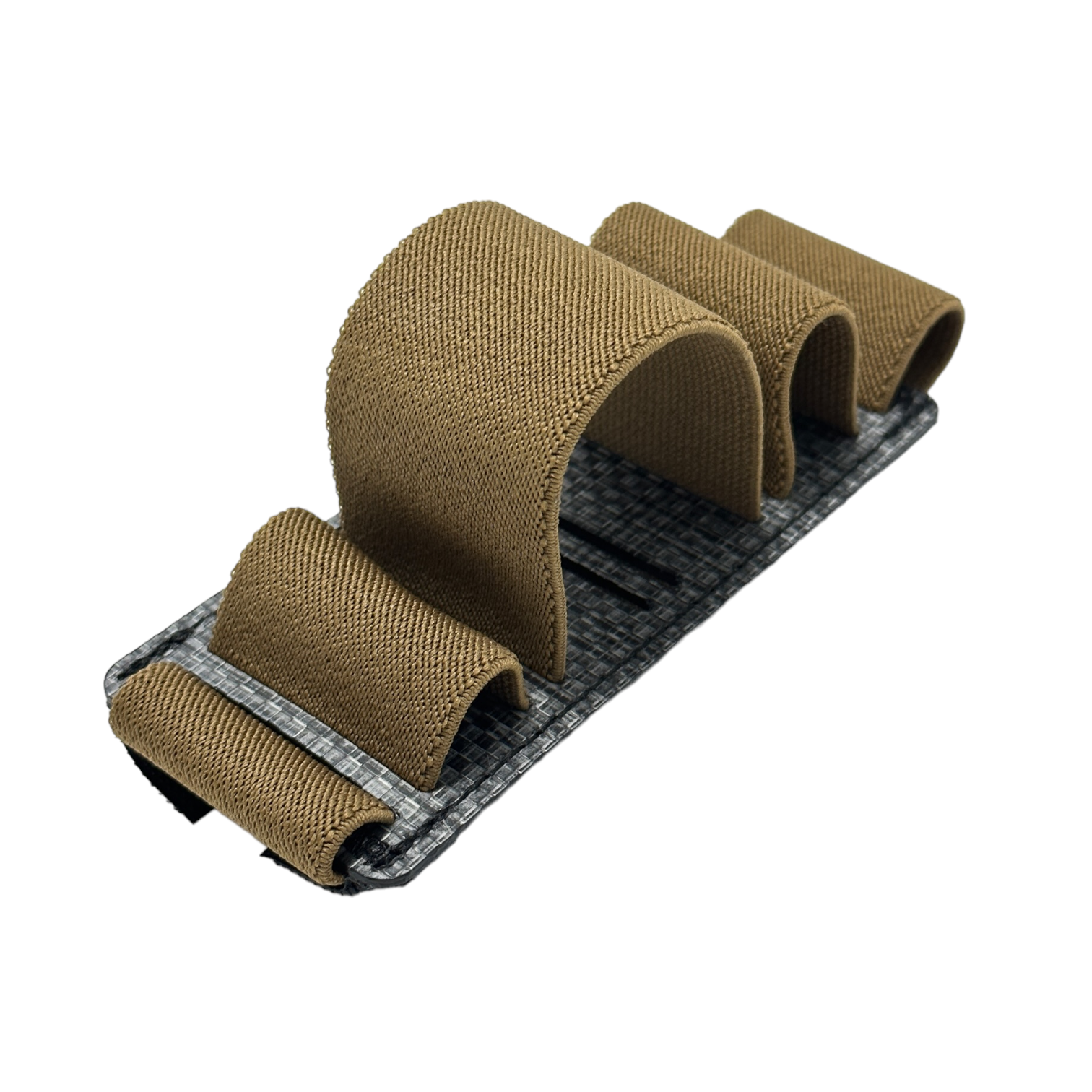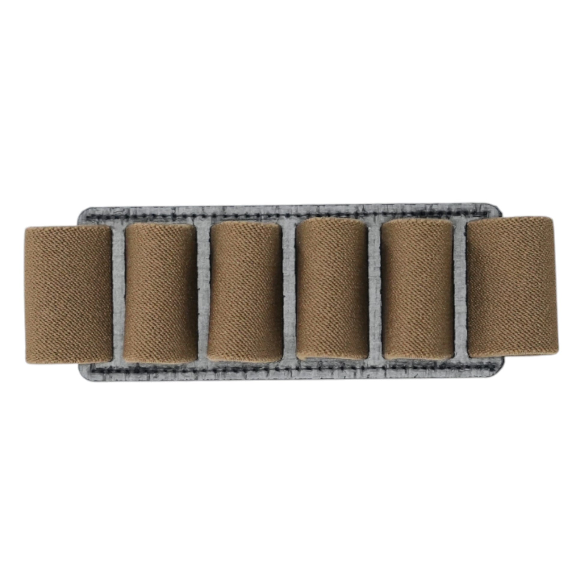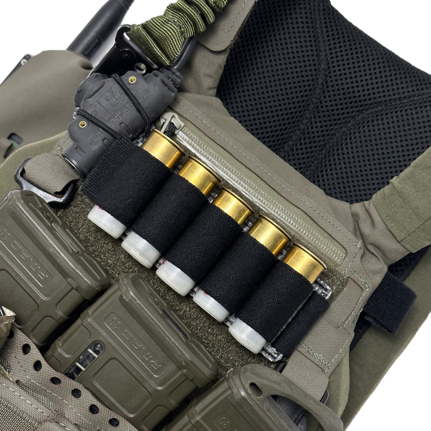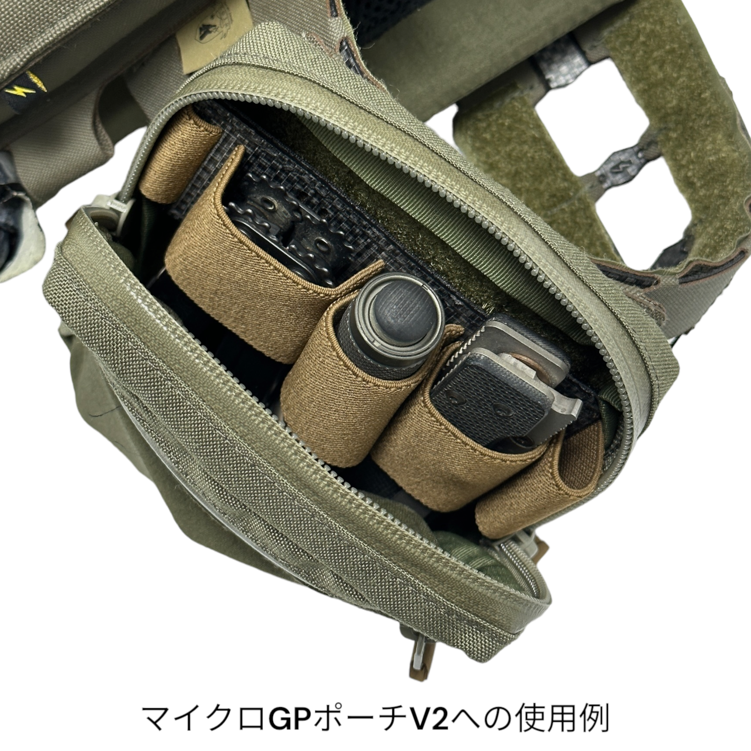 ショットガンシェルやCO2ガス、ハンドライト、ツール等、様々なアイテムの携行にお役立て頂けます。プレキャリの胸部ベルクロや、内部にベルクロループを縫製したバッグやポーチに貼り付けて使用してください。弊社製品ではマイクロGPポーチ、EXGPポーチ、バクトリアンバックパネルの内部にベルクロループを縫製配備しています。