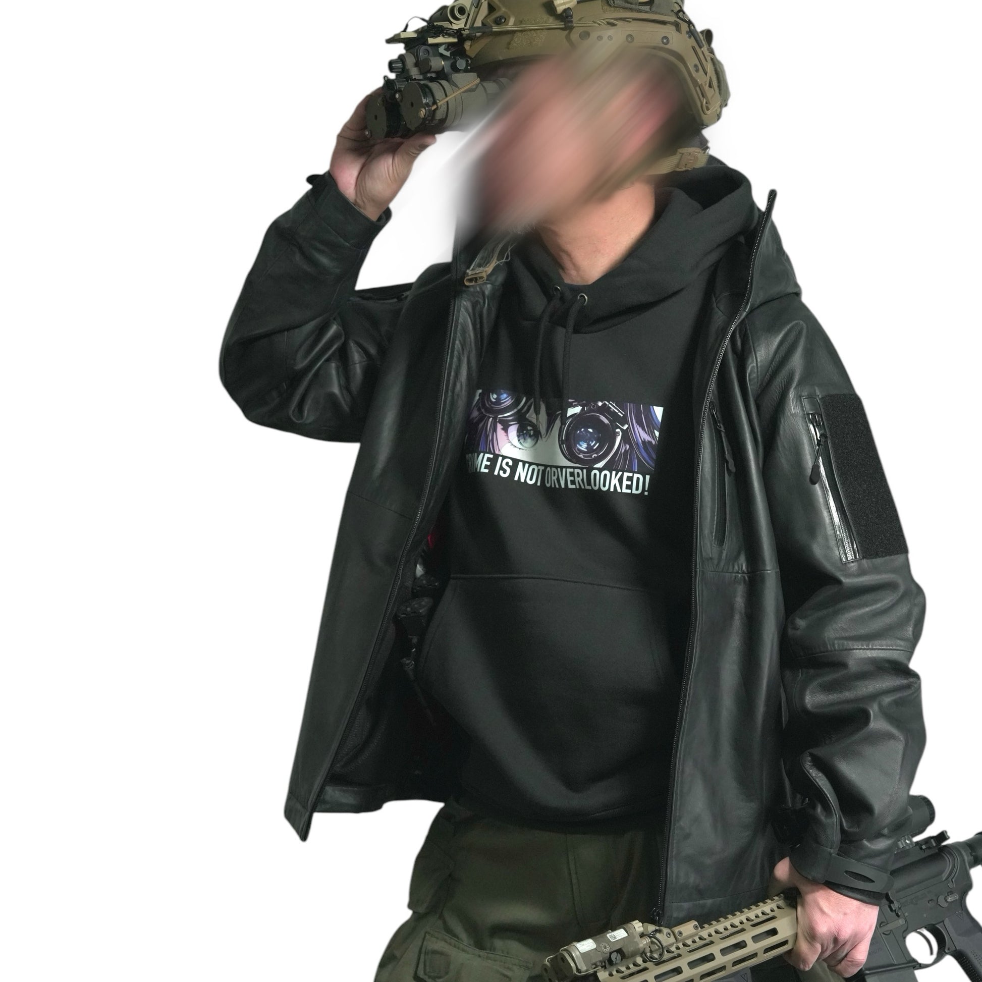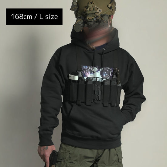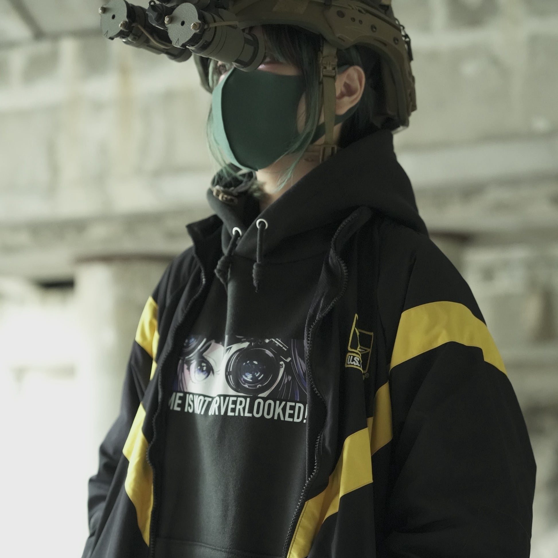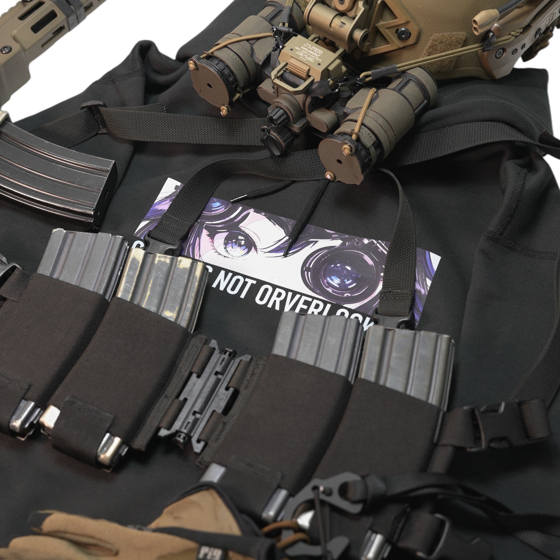 NVGで見つめてくる2Dガールを胸元にプリント。
