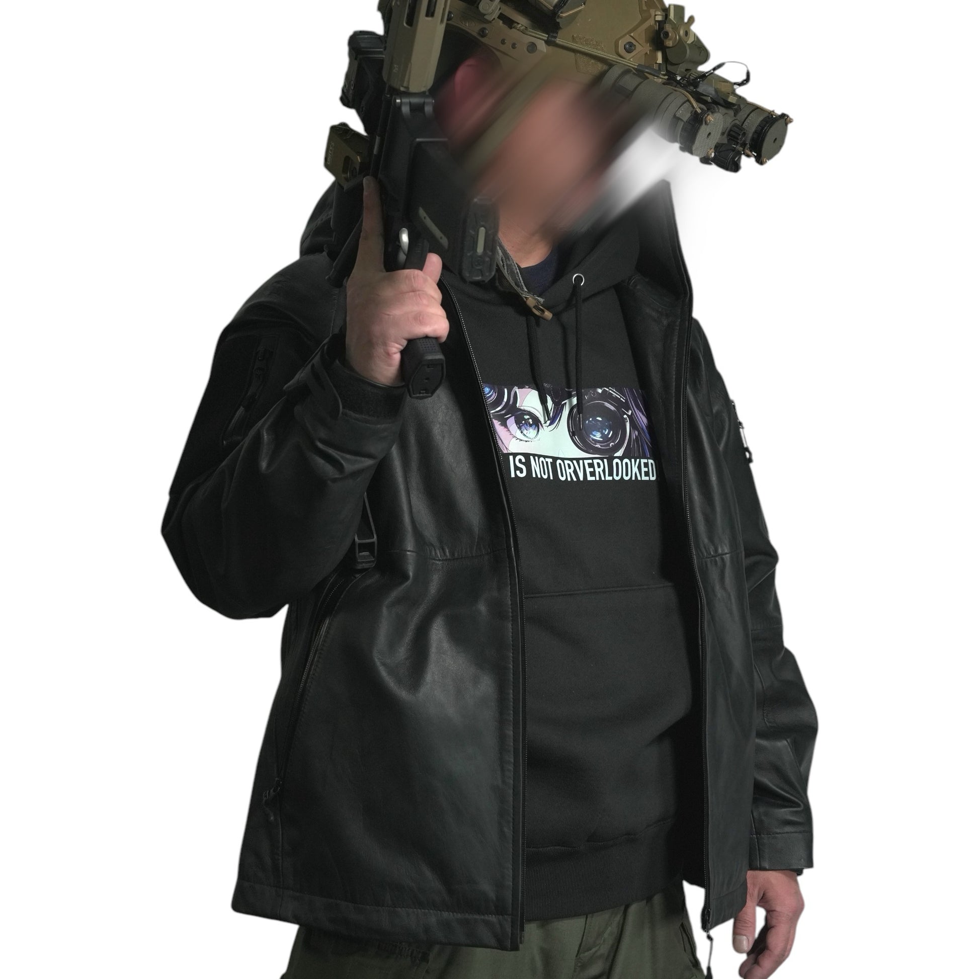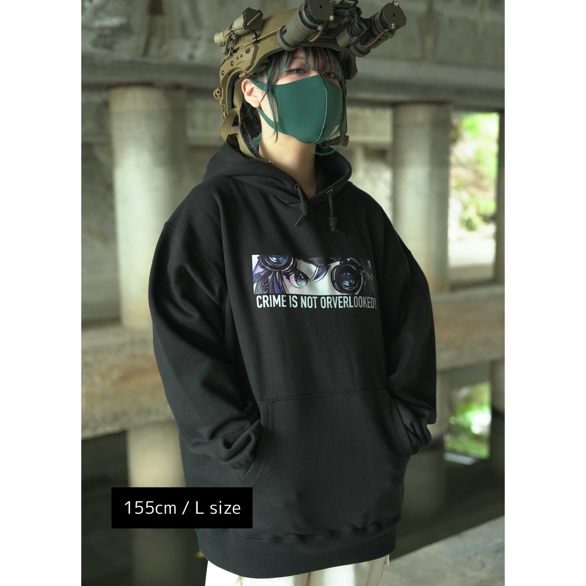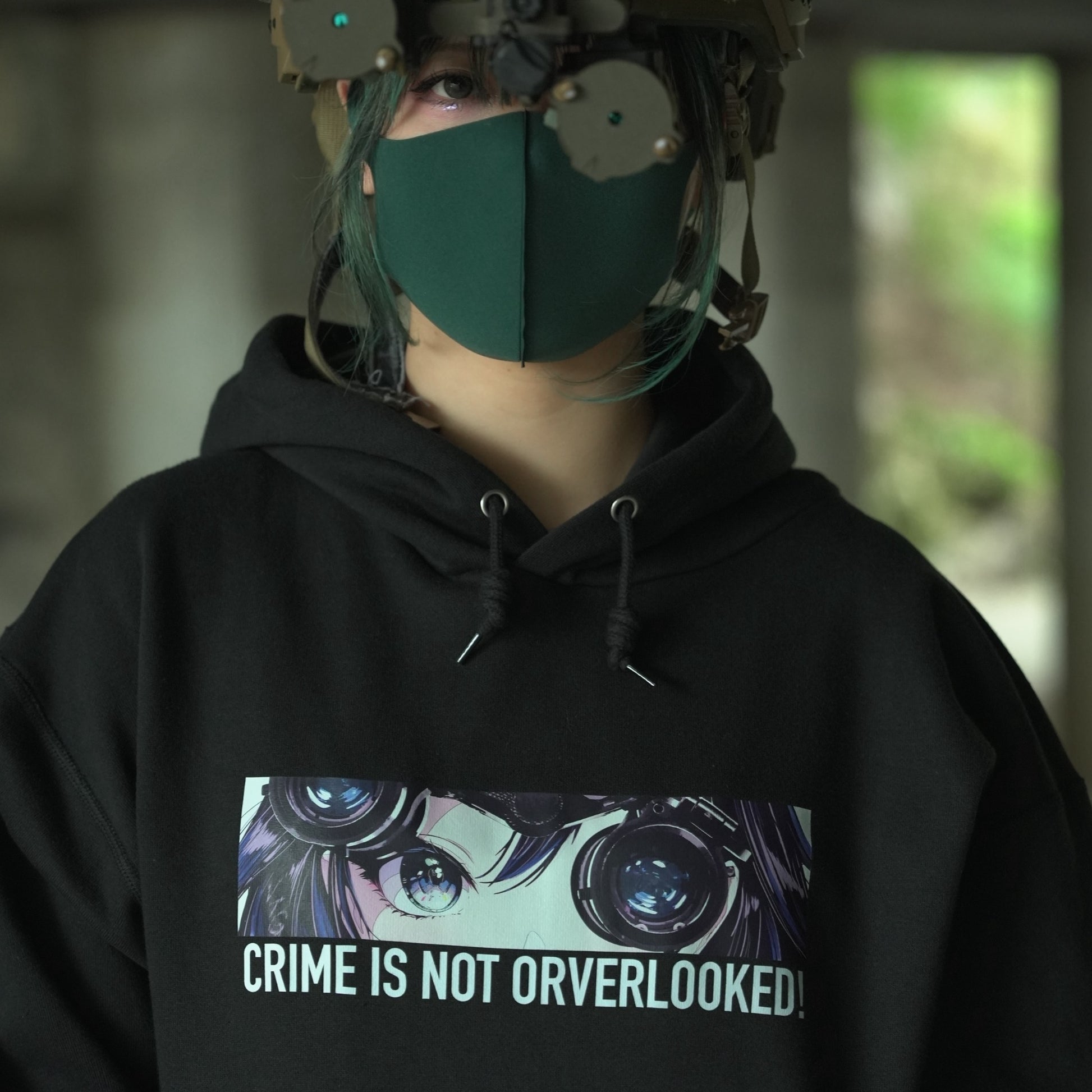 NVGで見つめてくる2Dガールを胸元にプリント。