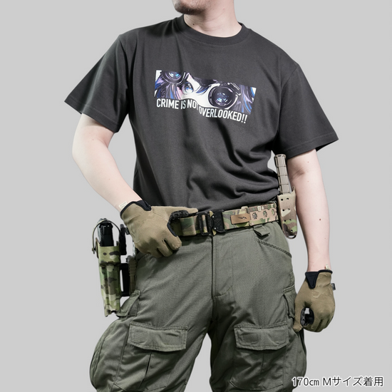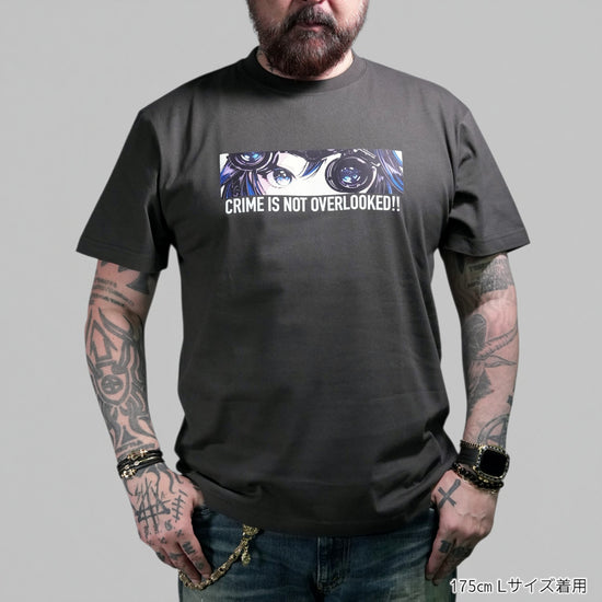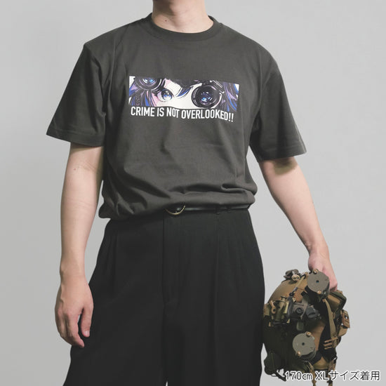 デザインは、ナイトビジョン(NVG)越しにこちらを見つめる少女の視線と、メッセージ「CRIME IS NOT OVERLOOKED!!」を大胆に配置。
