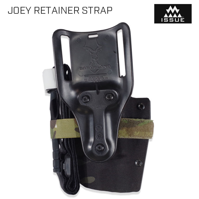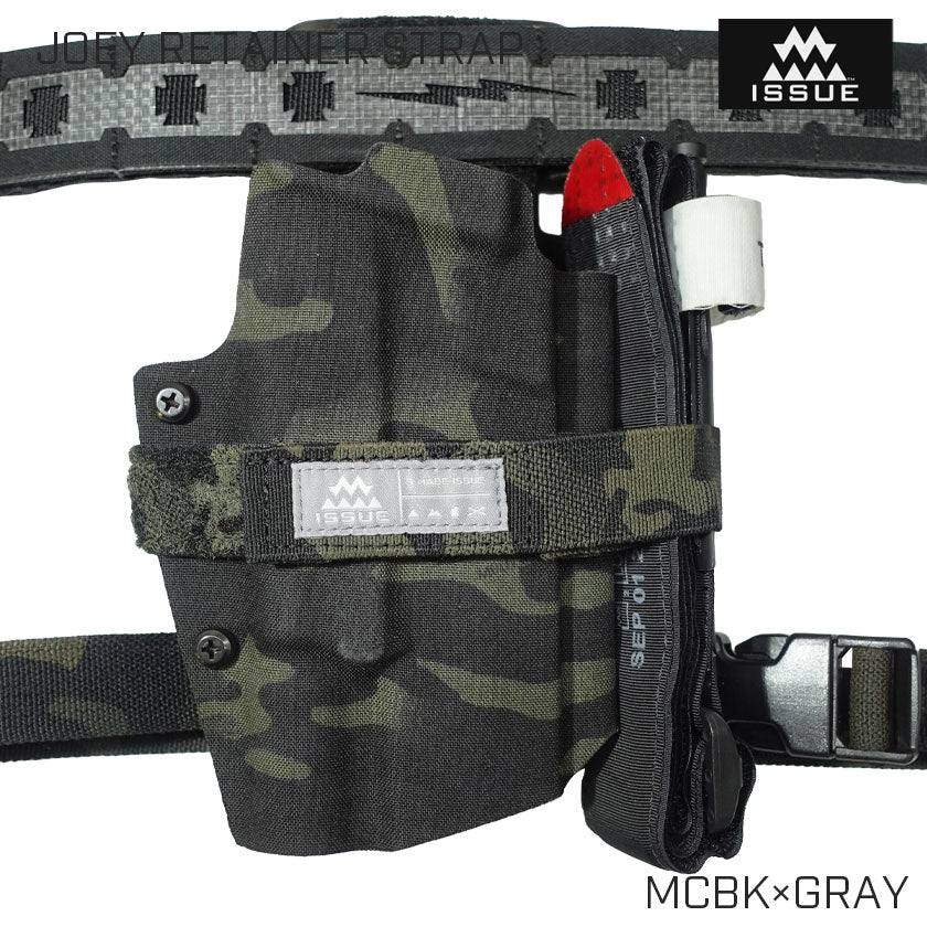 ホルスターに取り付ければ、CAT等の止血帯を保持可能です。リテーナーストラップを取り付ける際は、ホルスター本体とQLSやベルトループアダプターの間などに挟み込みこめば不意に外れることがなくオススメです。