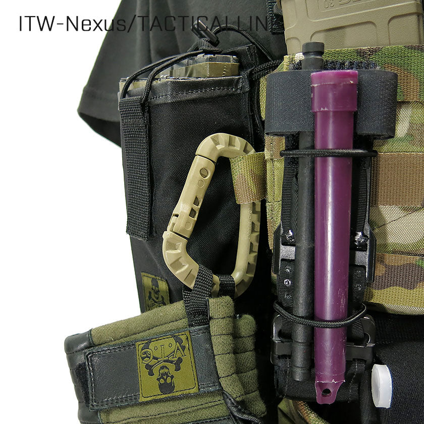 本品はグラスファイバー入りデルリン製(POM/金属に似た特性を持ち、柔軟性に富むアセタール樹脂)ノン・メタリックで軽量化されたタクティカルカラビナです。