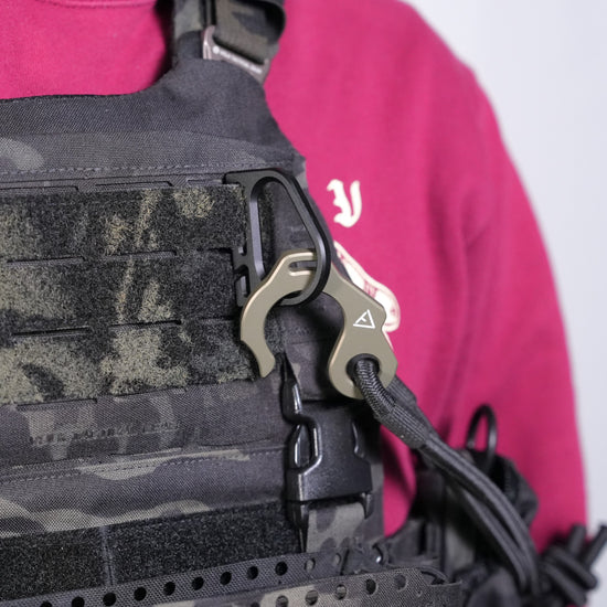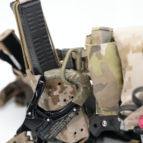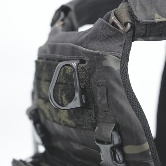 QUICK HOOK POINT V2は、そうした不満を解消するために、硬質かつ軽量、必要十分なサイズ感に設計し、MOLLEストラップへ直付けすることで無駄な動きを抑える構造としました。