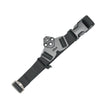 ストラップの接続部に伸縮性のバンジーコードを使用する事で屈伸時の大腿部の形状変化に追従。