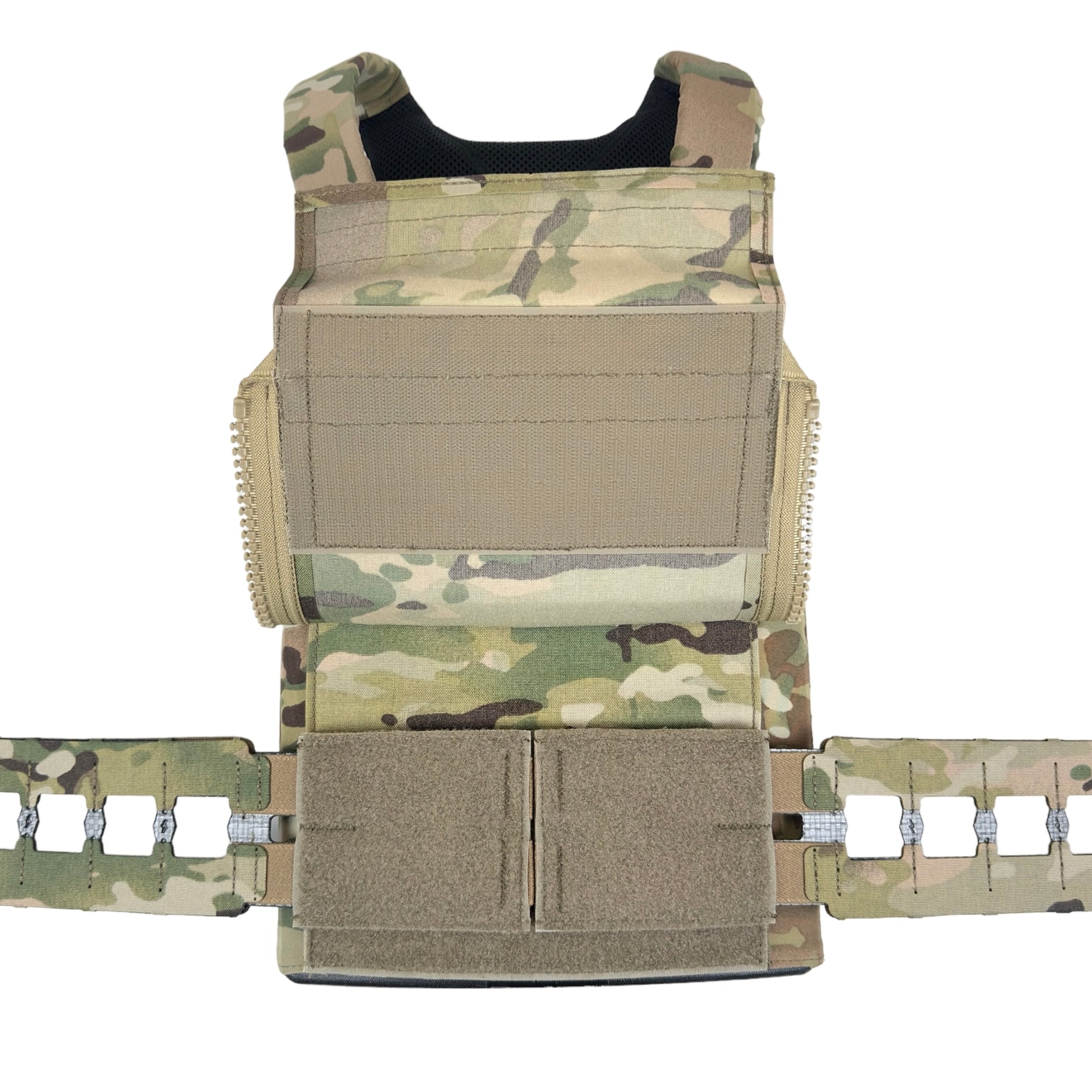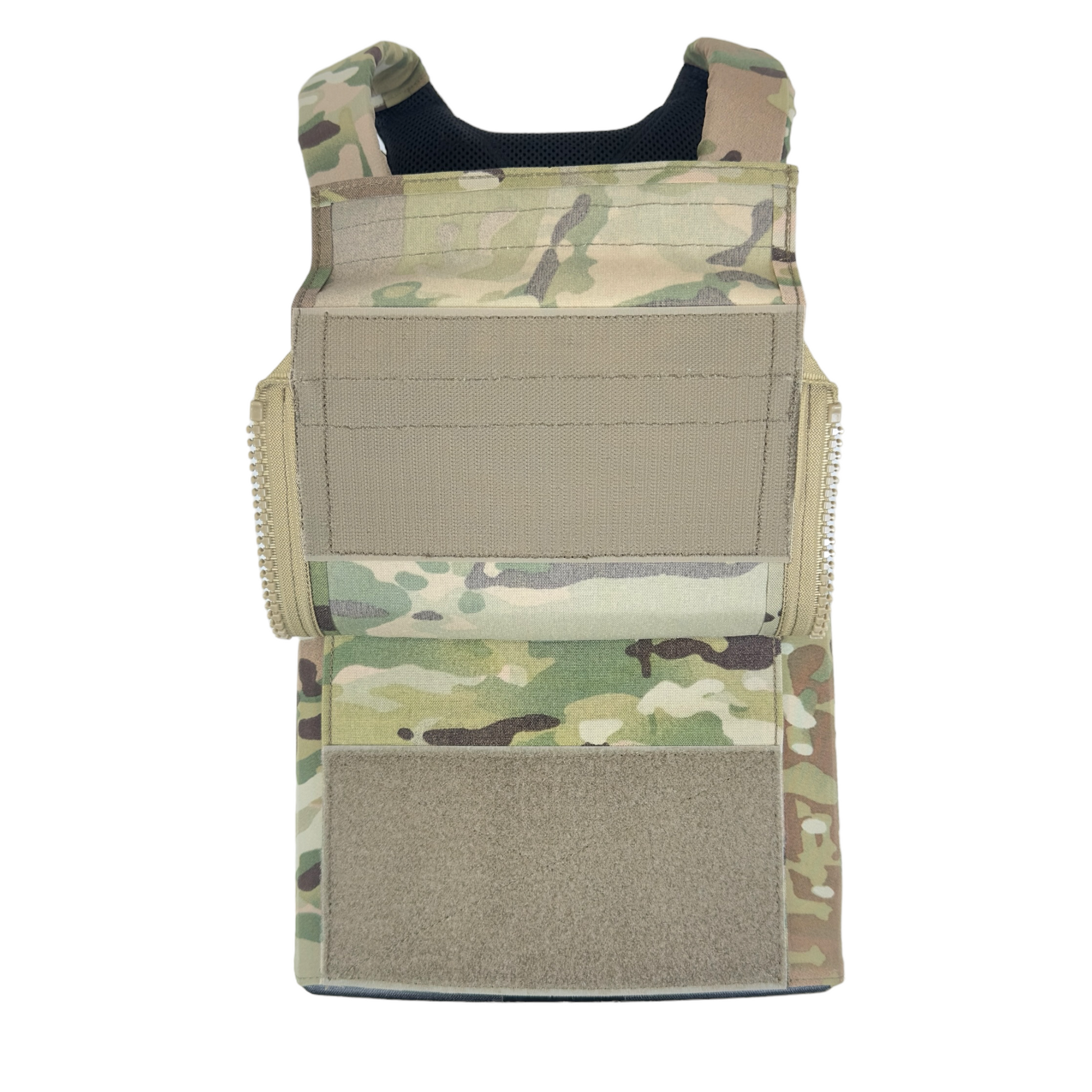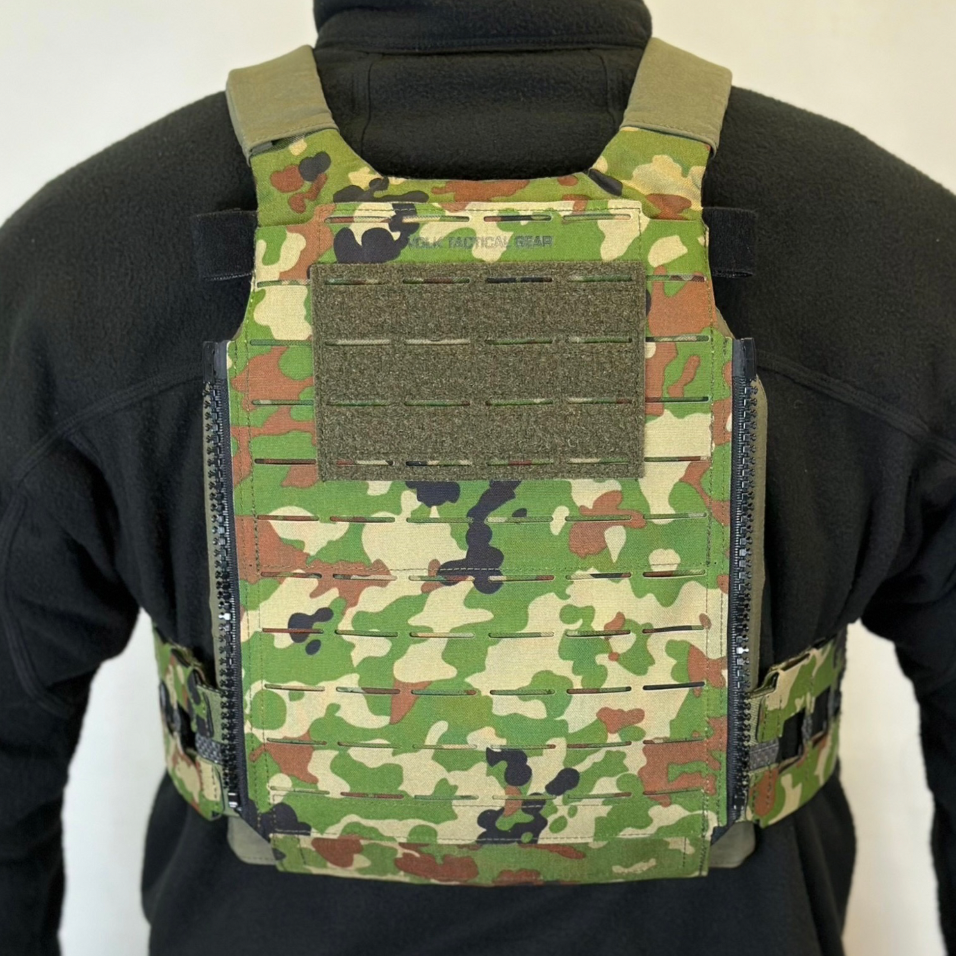 プラカードシステムで互換性を保った設計で、弊社の各種コアは勿論、他社製品の装着も可能です。背面のサイドジッパーはCRYE準拠に設定しており、弊社DPCのジップオンバックパネルの装着も可能です。