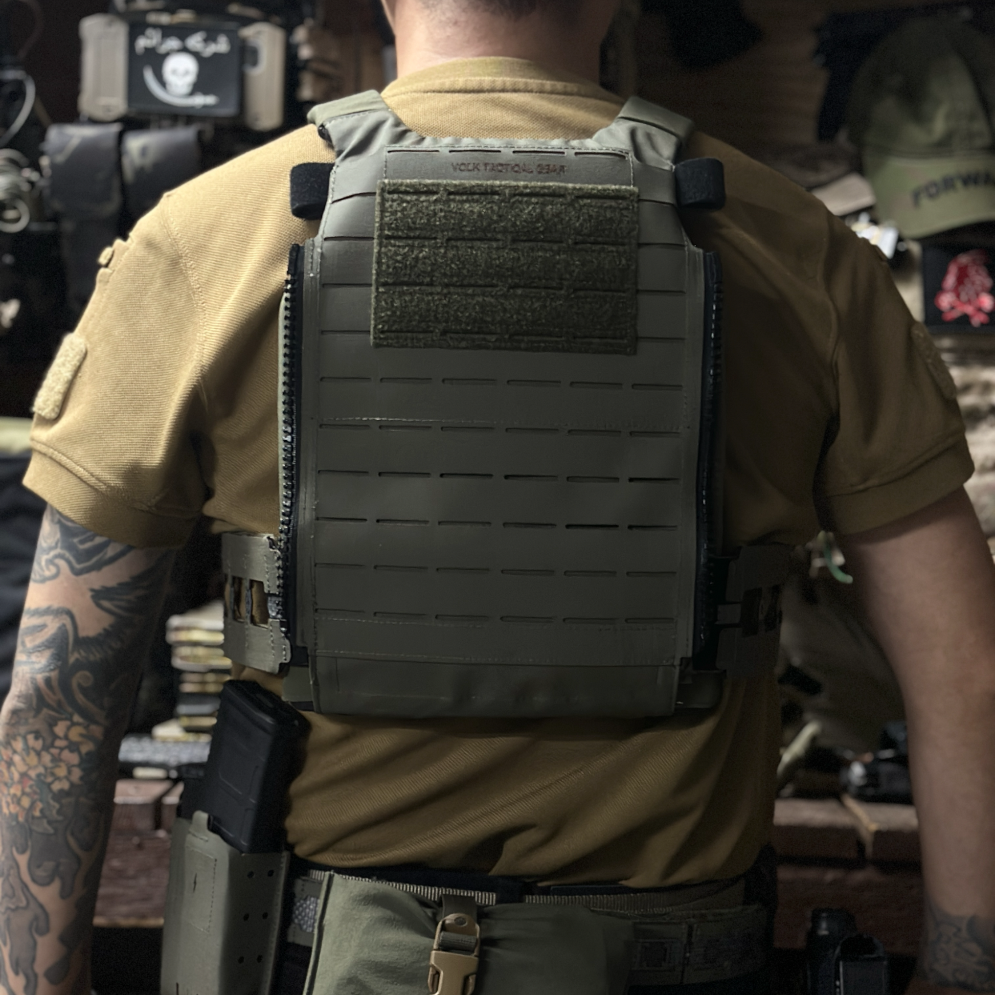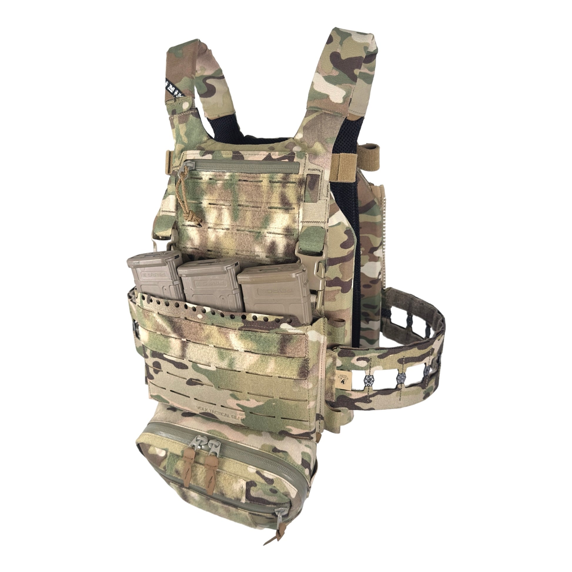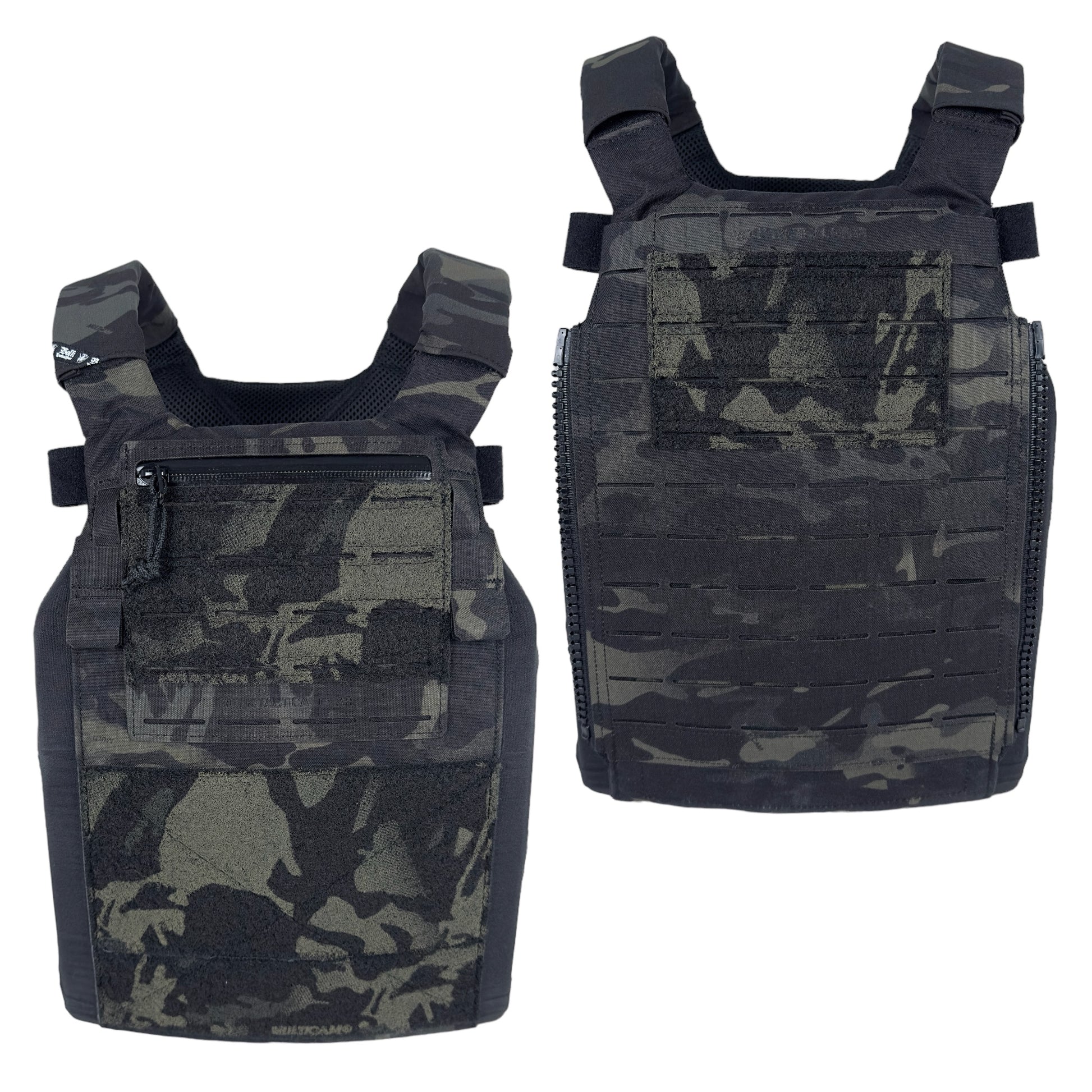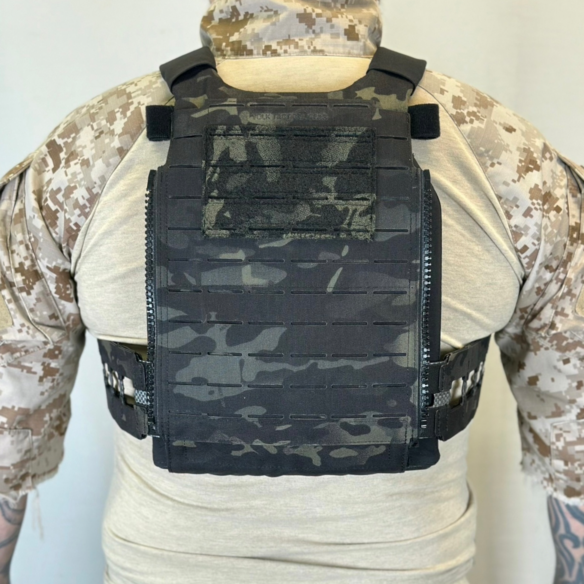 プラカードシステムで互換性を保った設計で、弊社の各種コアは勿論、他社製品の装着も可能です。背面のサイドジッパーはCRYE準拠に設定しており、弊社DPCのジップオンバックパネルの装着も可能です。