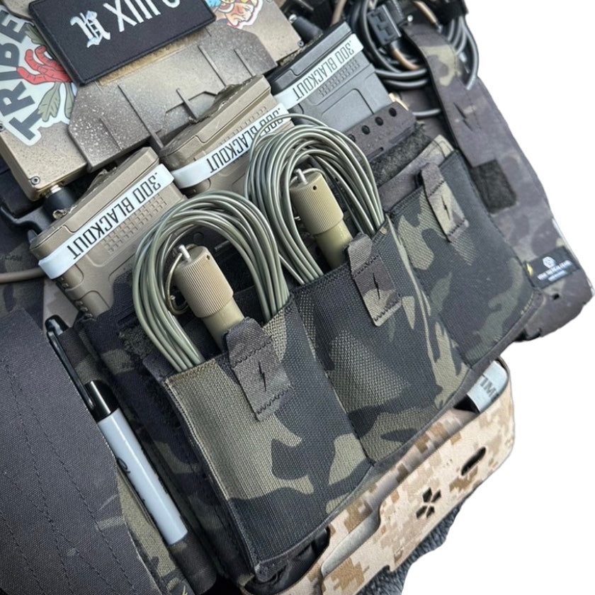 プルタブ上部はコードを通せるループ状になっており、背面側に配備されたコードホールを利用する事で別売のバンジータブを取り付ける事も可能です。背面にはモールスリットを分断に配備しているので、ベルトやモール対応装備、ストラップ等に装着可能です。また、モールストラップの先端分部にはテグリス素材を内蔵しており、モール装備への取り付けが容易で、尚且つ取り付け後はしっかりと固定されます。