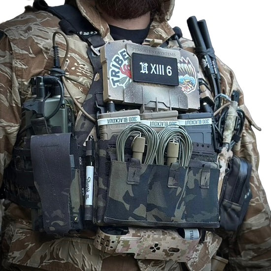 本品はライフルマガジン3本適応サイズで、ライフルマガジンと同形状の物なら大体携行可能です。