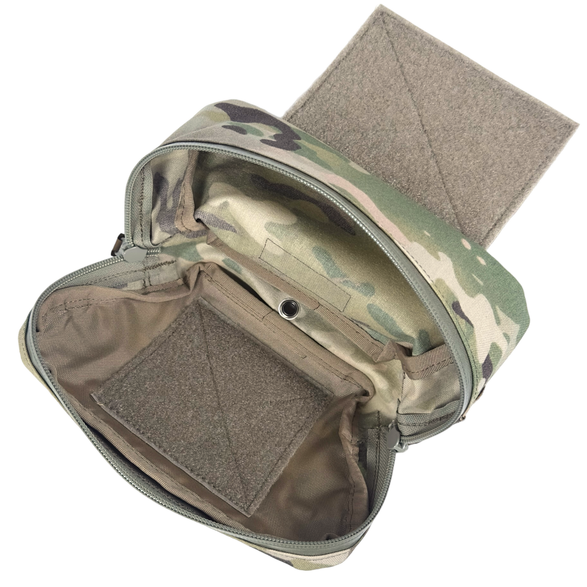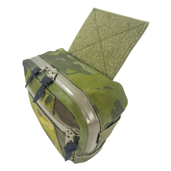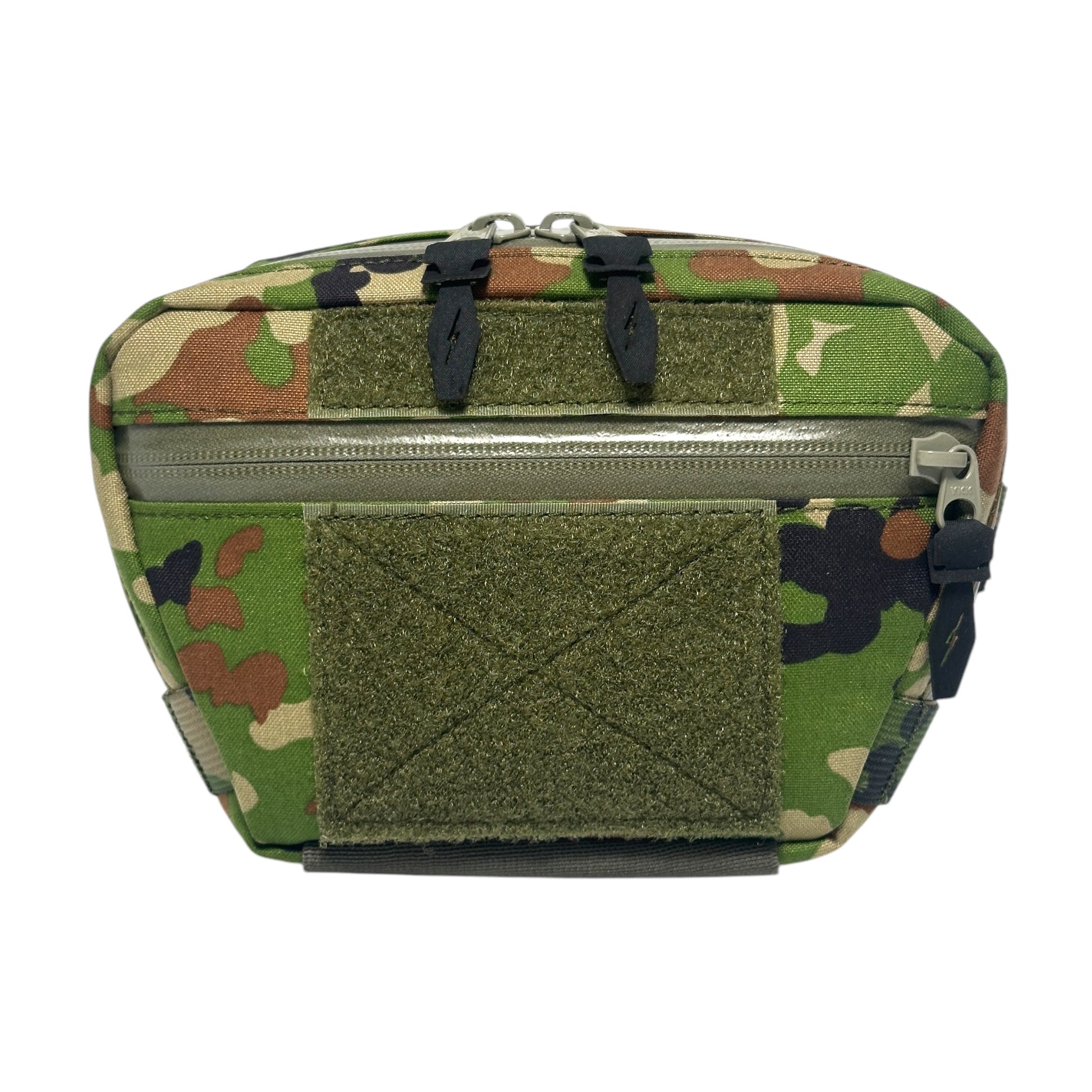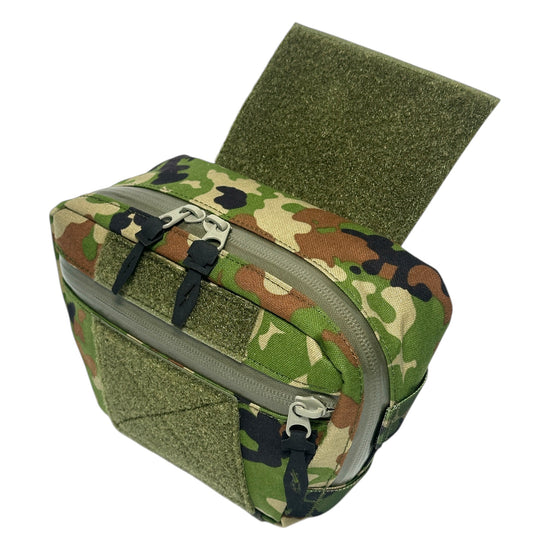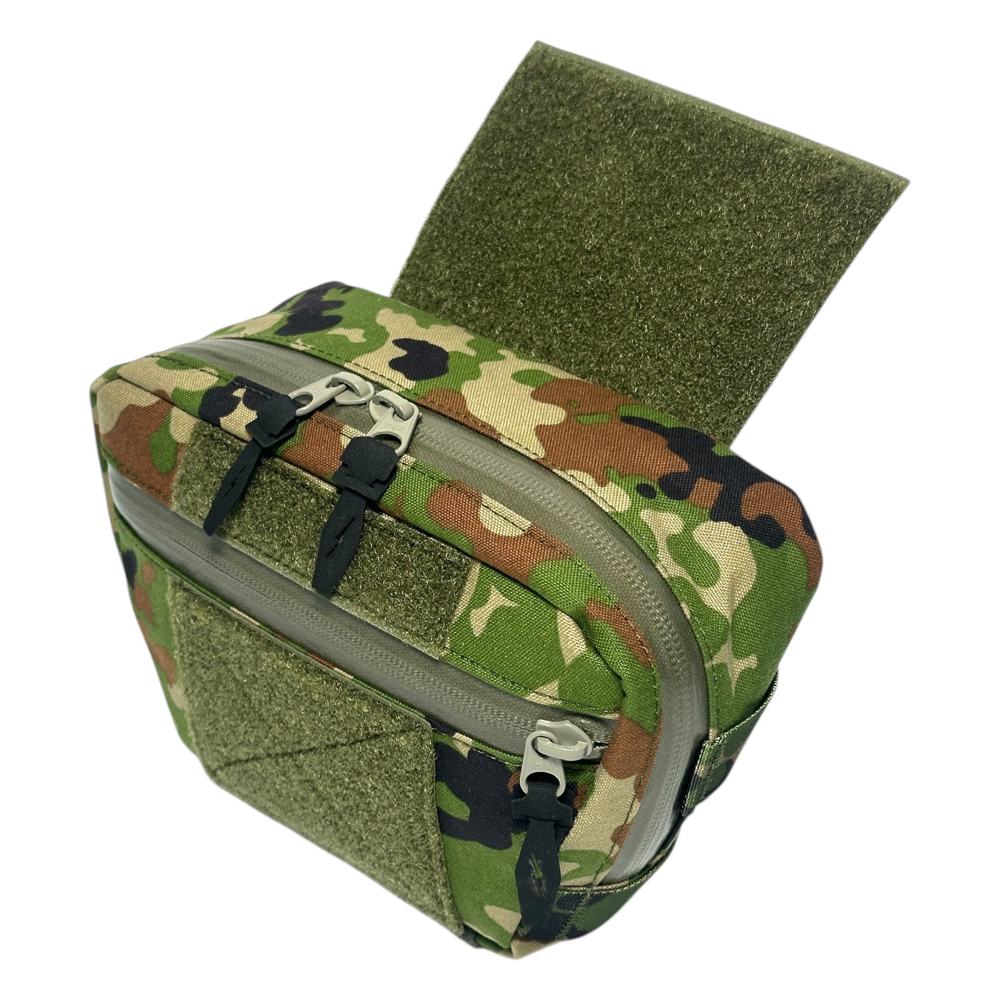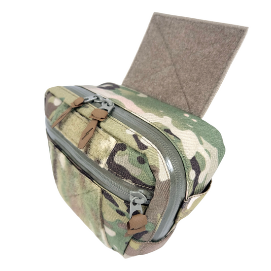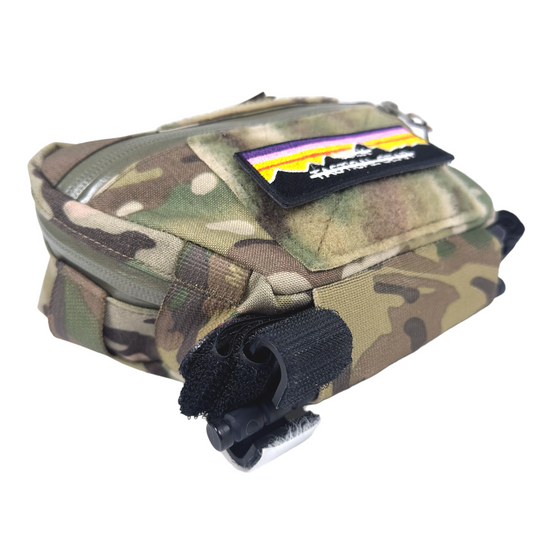 既存のウアンダーポーチから厚みが増して内容量が増加。更に表面にスリットポケットを追加、内部にベルクロループも追加してマルチフィットループやエラスティックインサートを装着可能にして、アイテムを細かく区分け携行可能になりました。