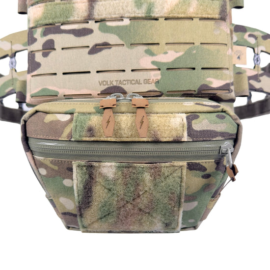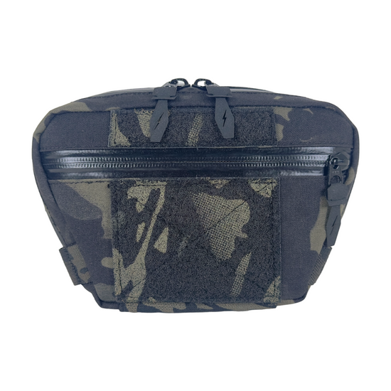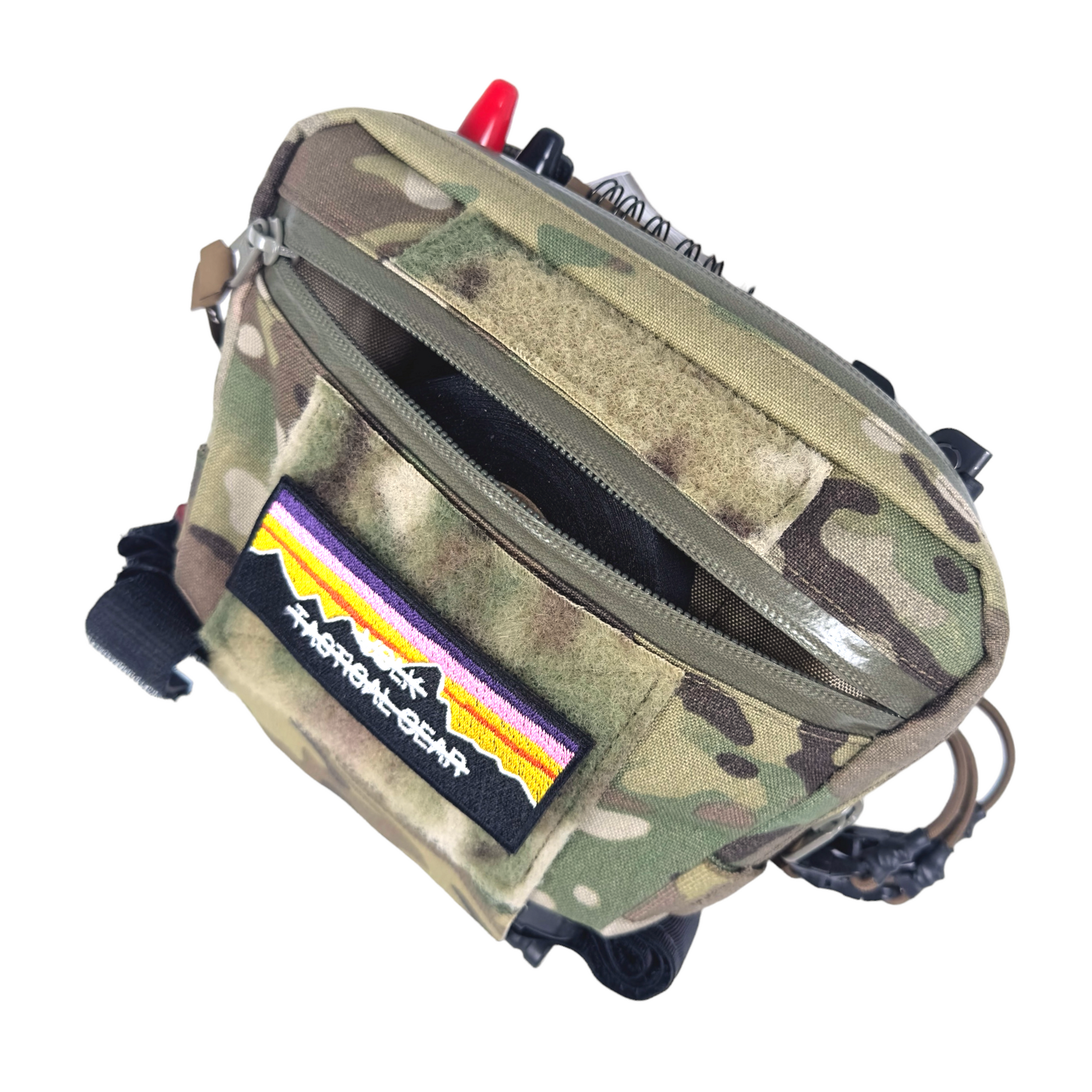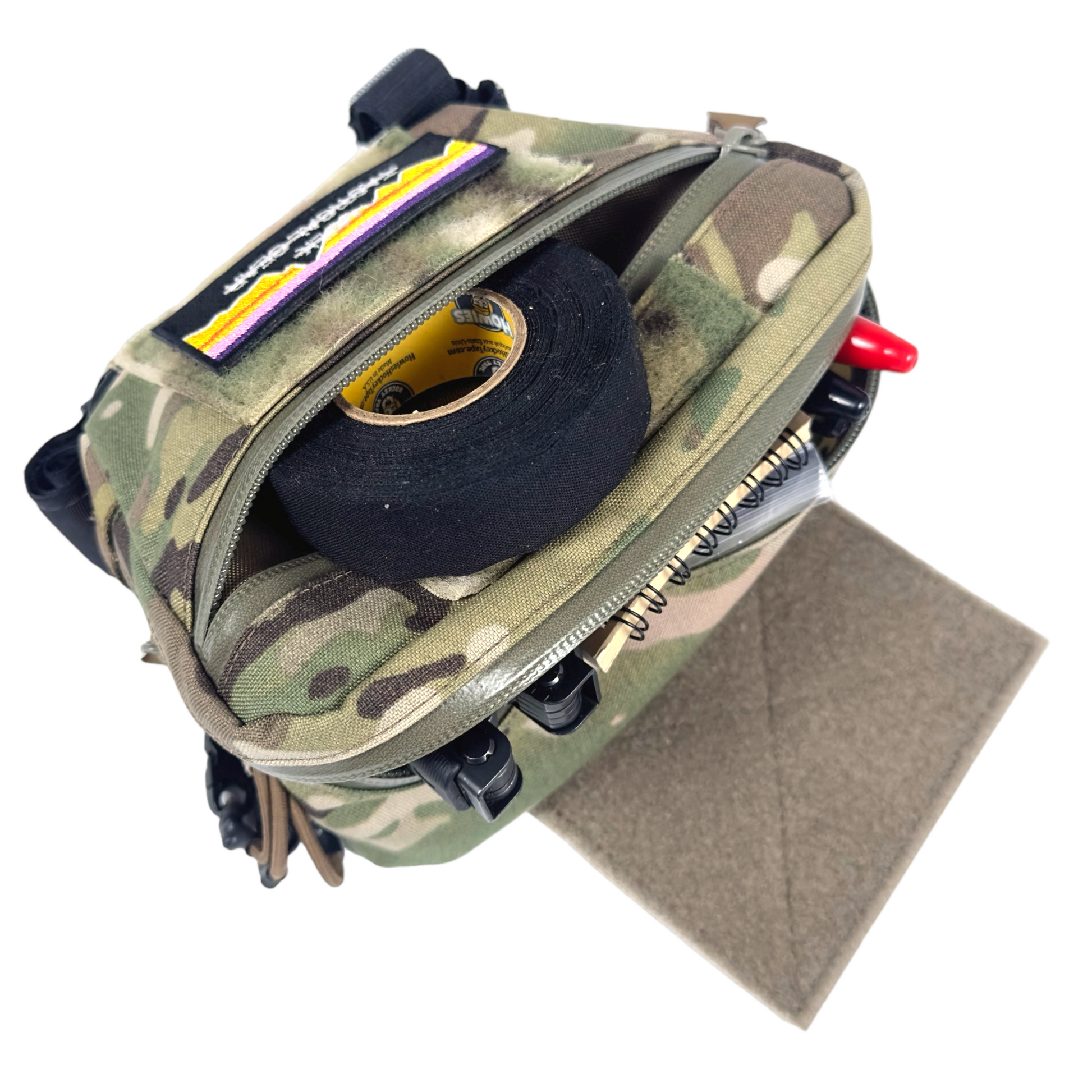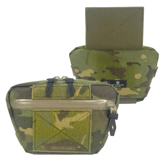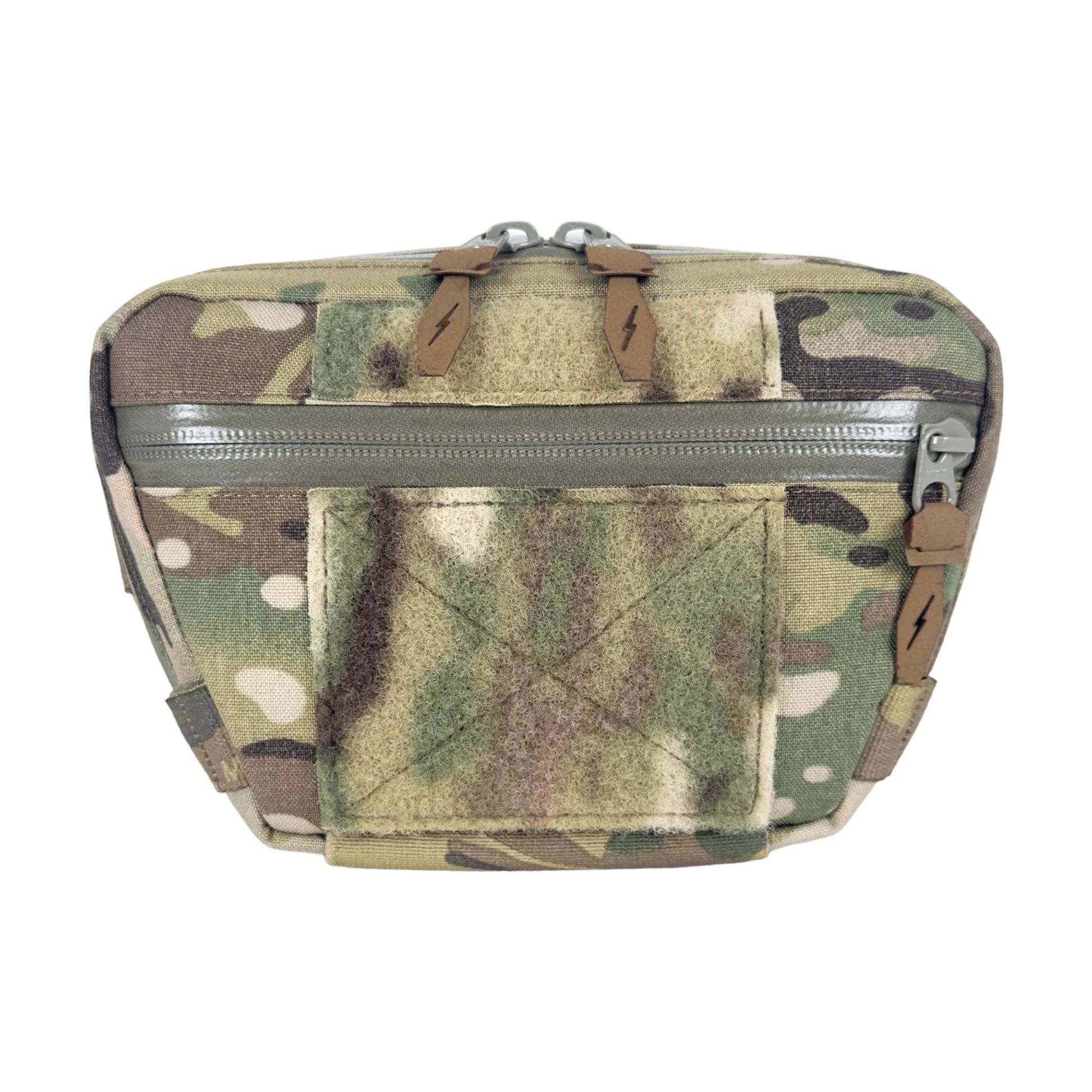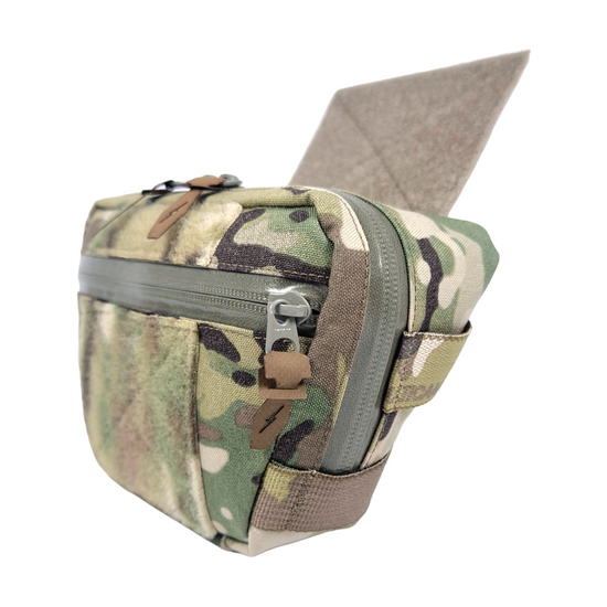 既存のウアンダーポーチから厚みが増して内容量が増加。更に表面にスリットポケットを追加、内部にベルクロループも追加してマルチフィットループやエラスティックインサートを装着可能にして、アイテムを細かく区分け携行可能になりました。