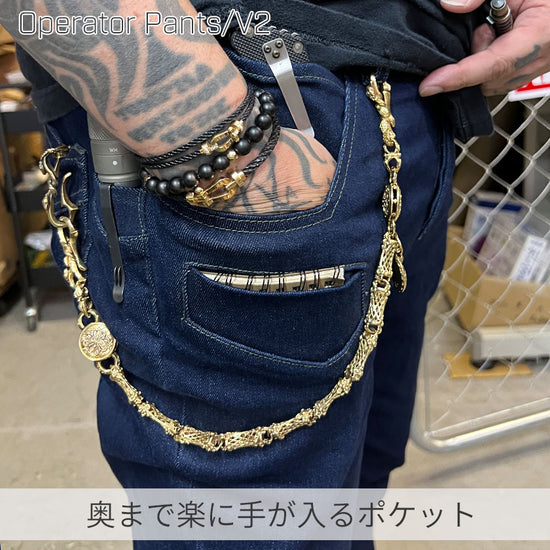 スマホやマガジンを入れるのにピッタリな太ももポケットは刺繍を黒のVTGロゴにリニューアルして健在です。