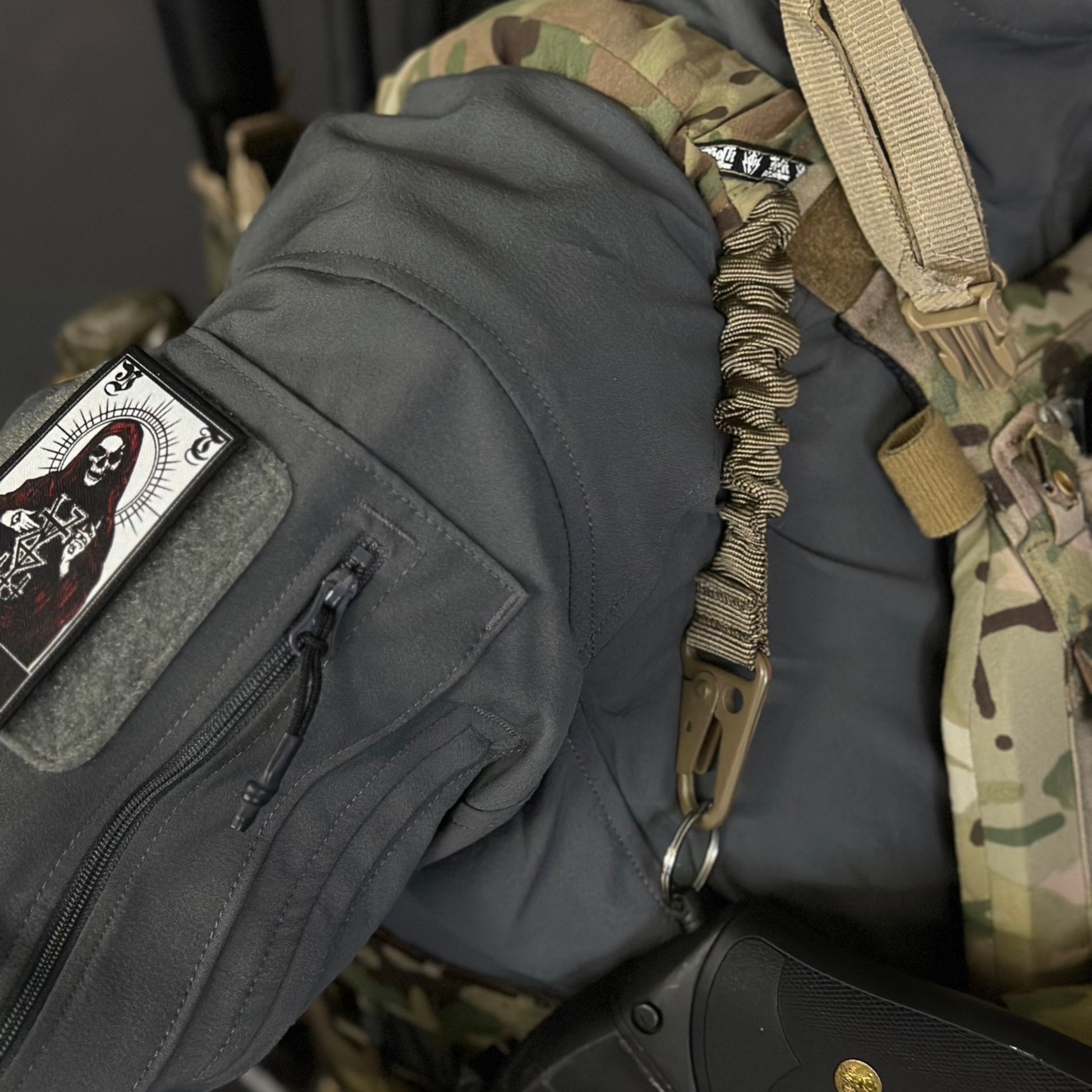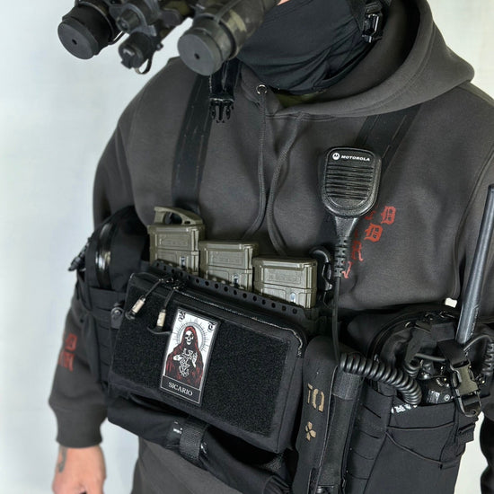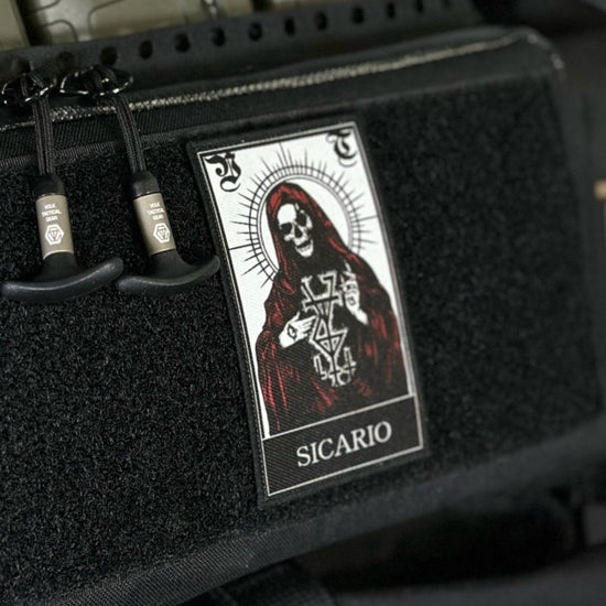 VTGスカルを死神に見立てた大人気デザイン。胸にはルーン文字風のVTGと逆十字。両手には"全てを見通すプロビデンスの目"。VOLK TACを表すVとTを上部にあしらい、両ブランドのモチーフが散りばめられたデザインです。死神の姿で天使の光輪を冠する姿は「敵にとっては死神、味方には天使」そんな存在を表現しています。