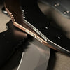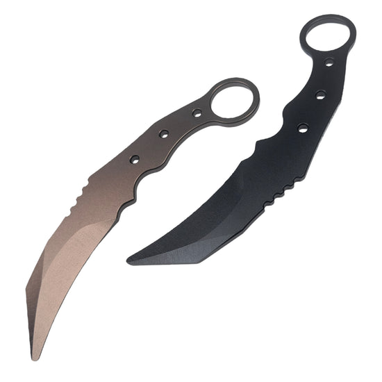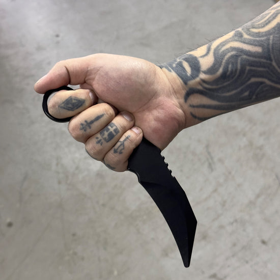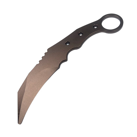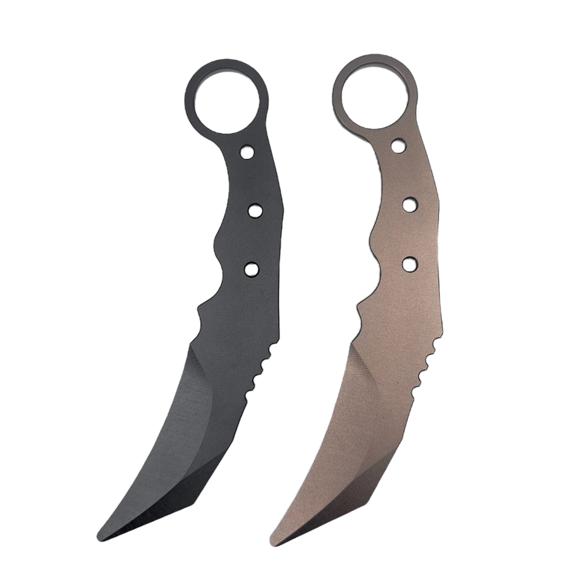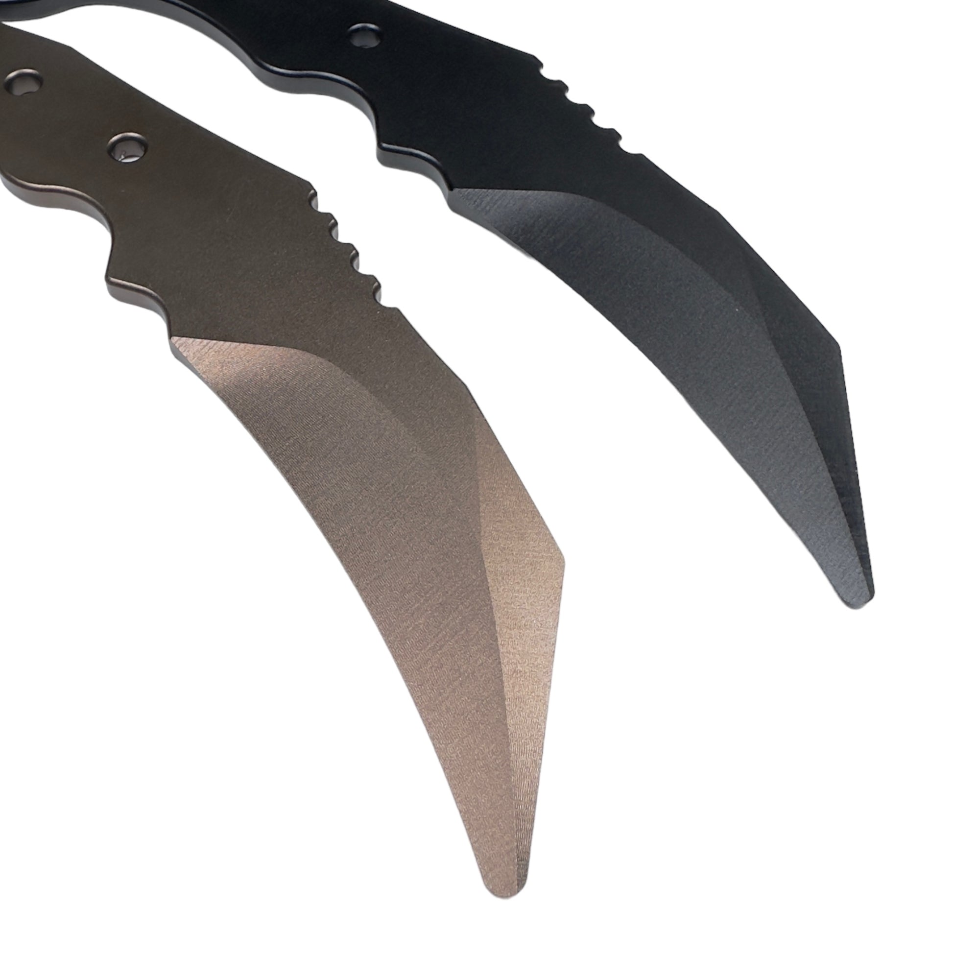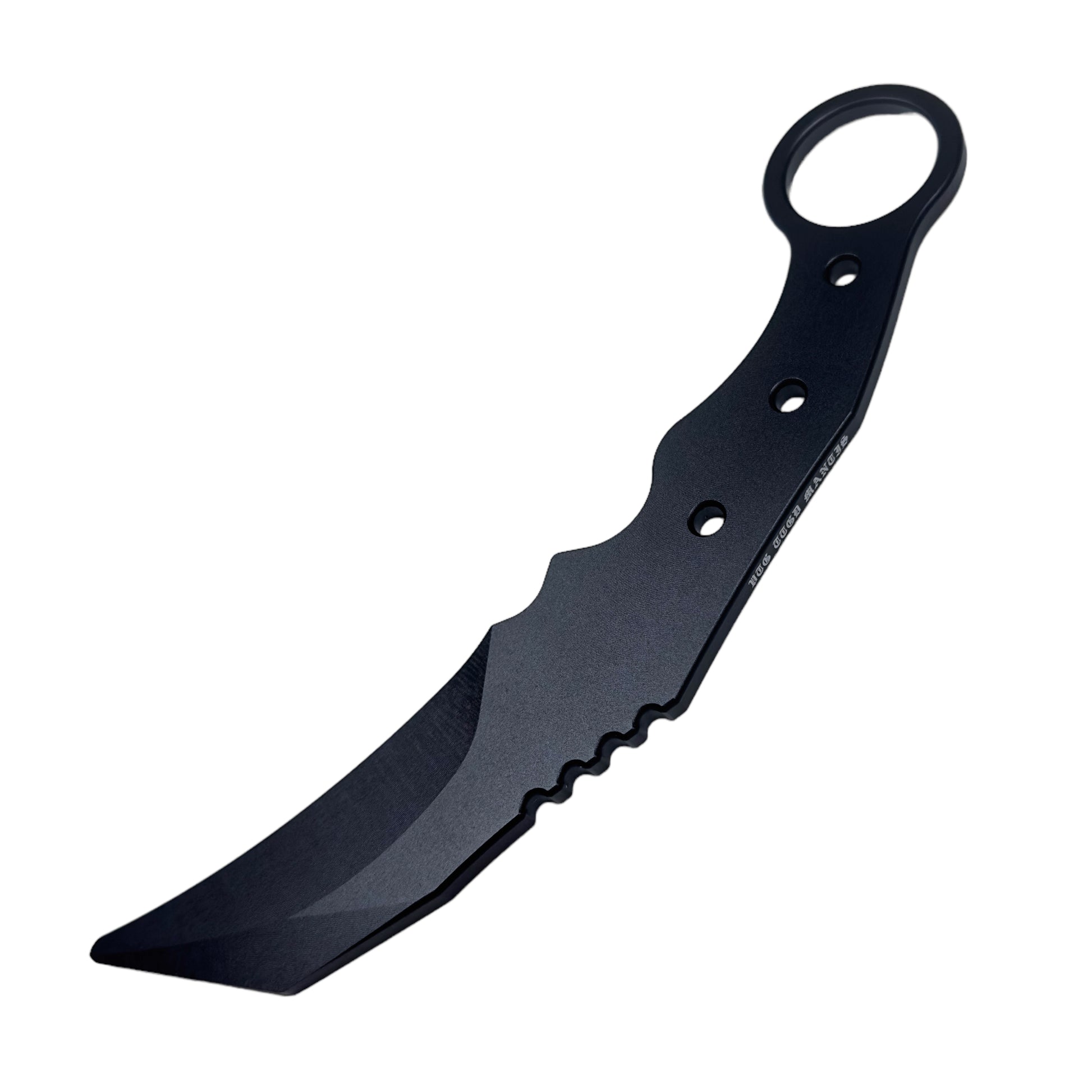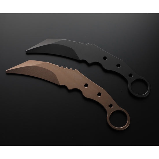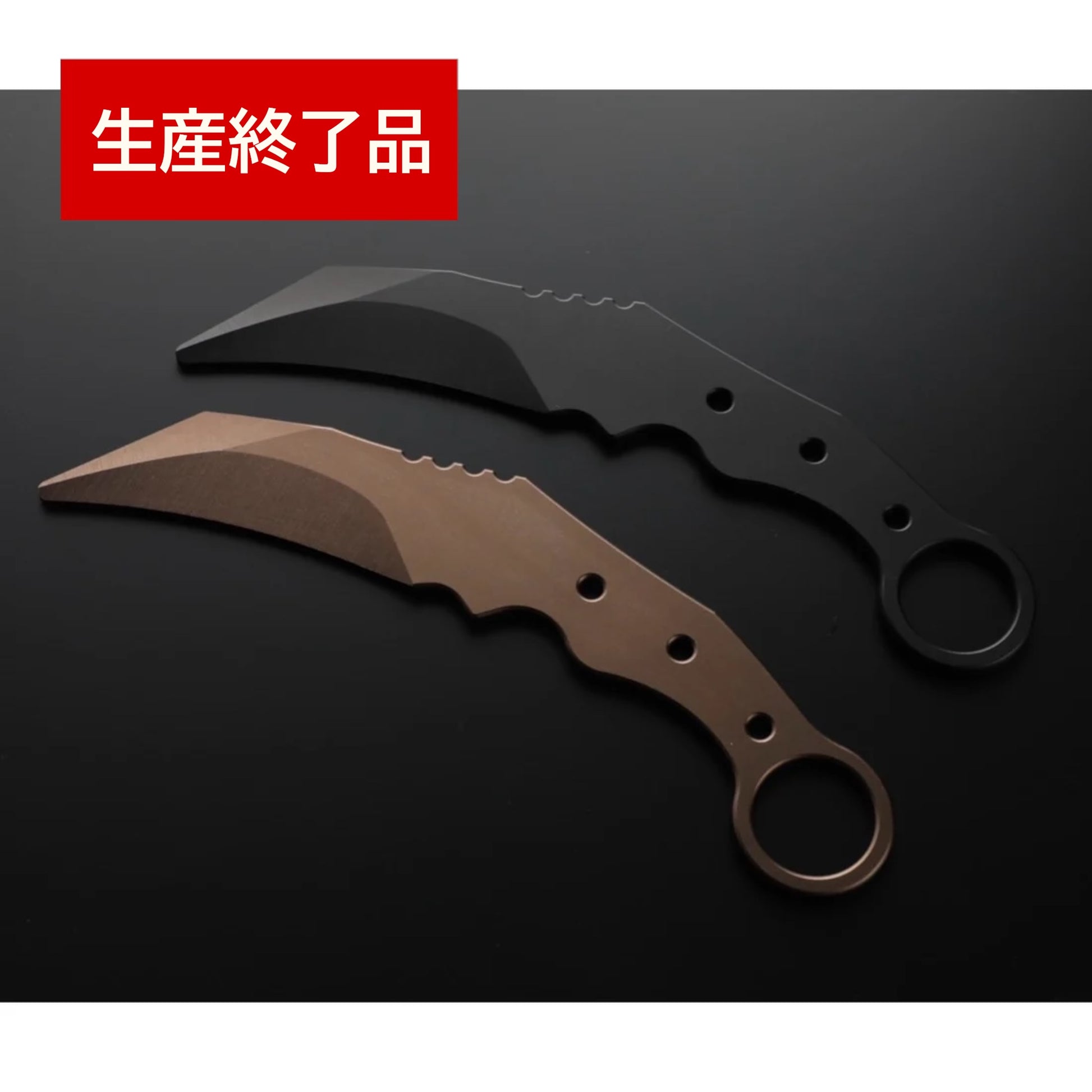 既存のカランビットに比べアールを浅くし設定し、グリップ部分の凹凸設計により、順手、逆手のどちらでも手に馴染む様にしています。