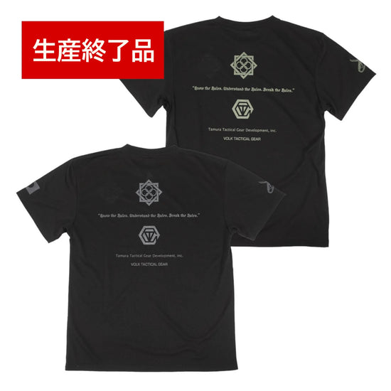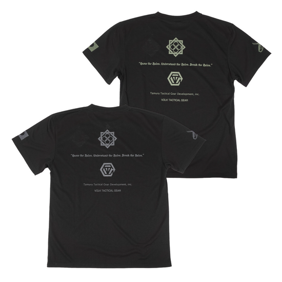 今回も数量限定です ! Tシャツ第三弾目にして意外とやっていなかった田村装備開発のロゴとVOLK TACTICAL GEAR のヘックスロゴを背面に並べたデザイン。シンプルに分かり易く2社のロゴが入っているTシャツが欲しい。と知人やお客様に言われる事が多かったので、今回そう言ったご意見ご要望を尊重しつつ全体のデザインを構成しました。