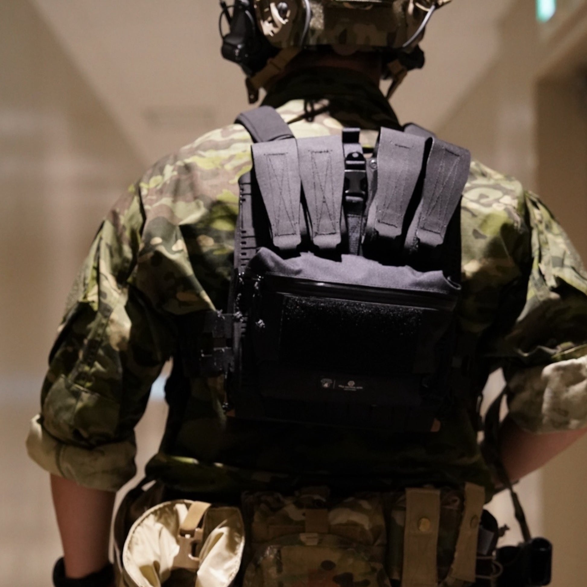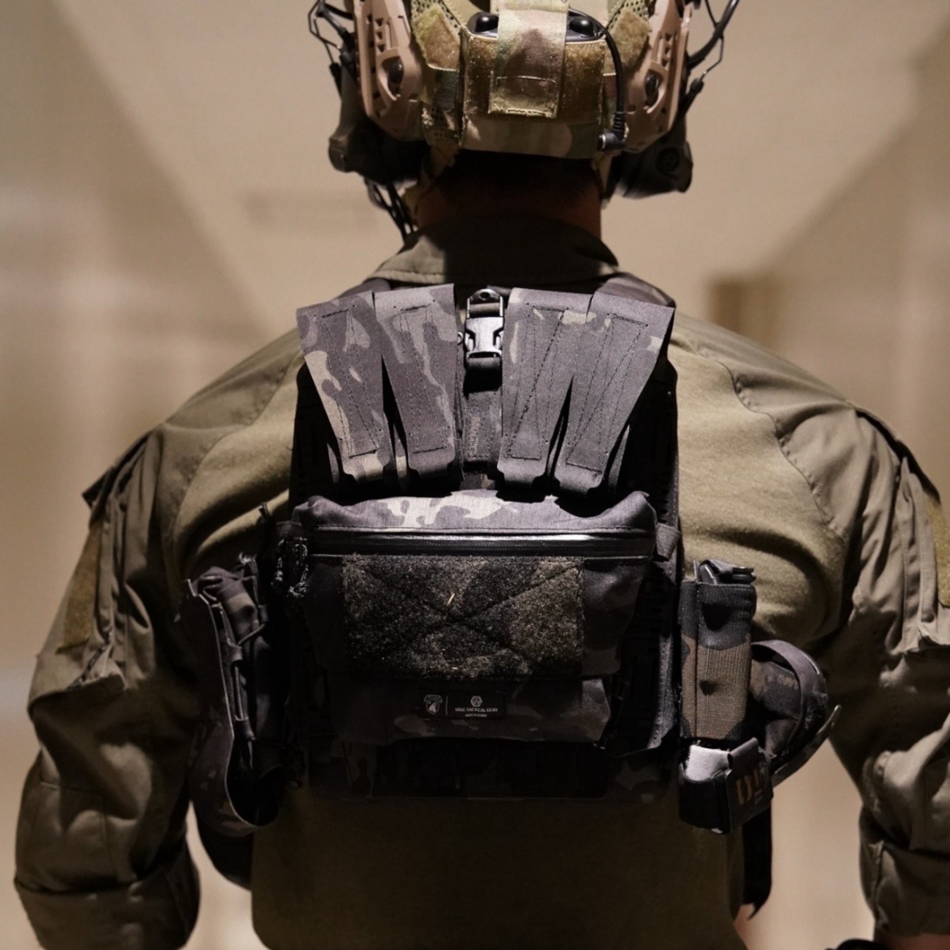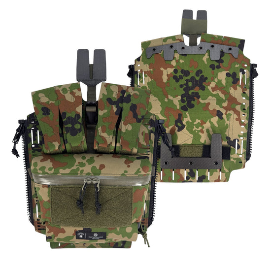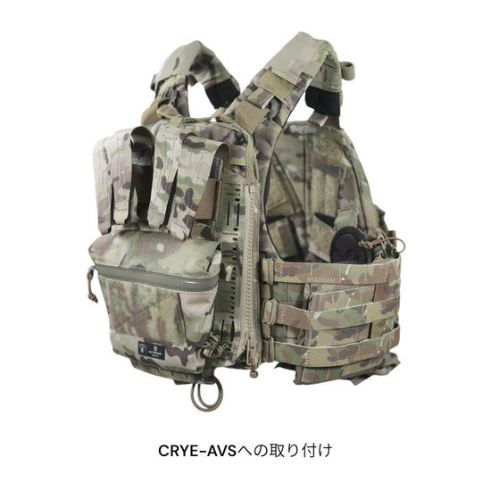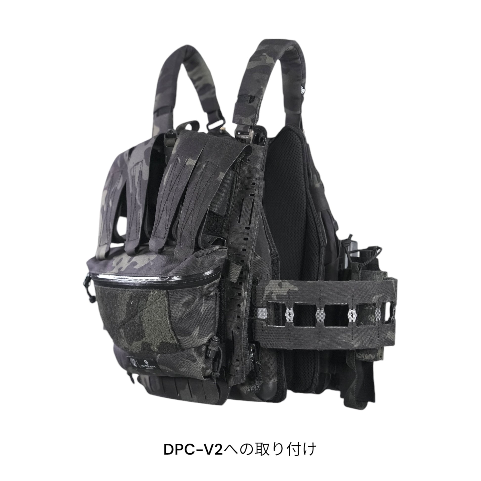 CyreのZIP-on規格を採用しており、弊社製DPC (ダガープレートキャリア)、SBPC (サタンズビートルプレートキャリア)、Crye社製AVSなど、Cyre ZIP-on規格採用のプレートキャリアに装着可能です。