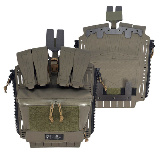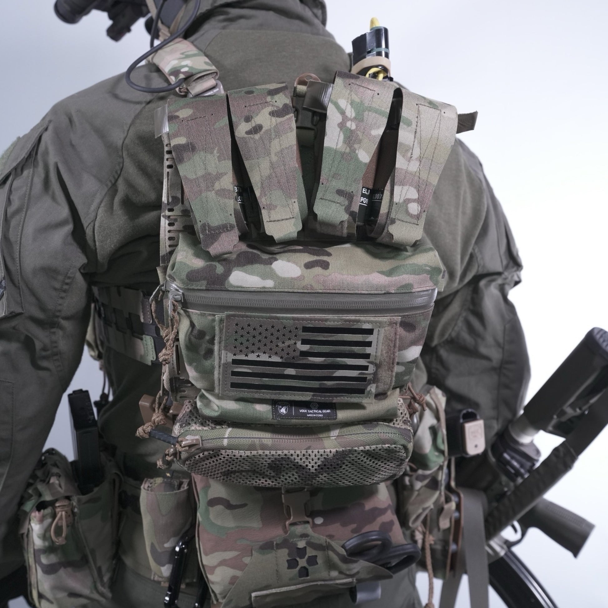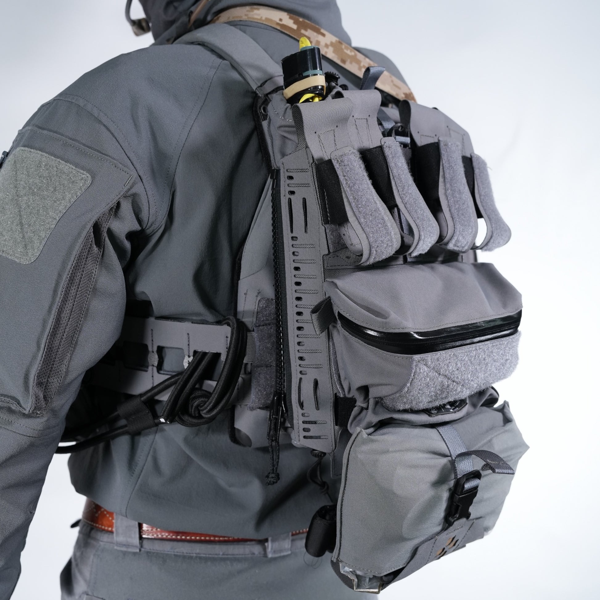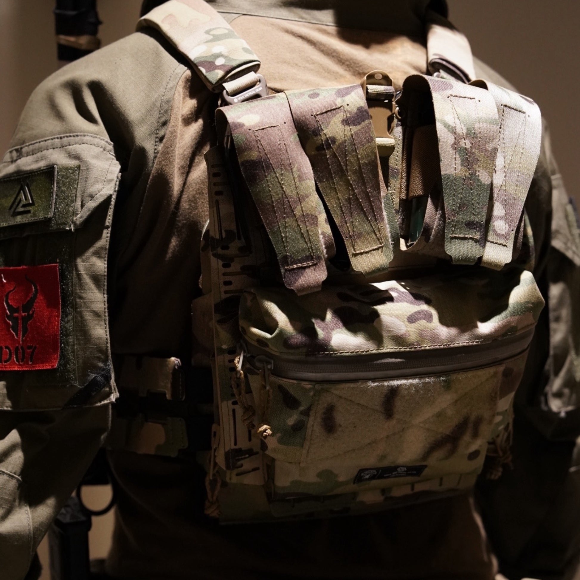 CyreのZIP-on規格を採用しており、弊社製DPC (ダガープレートキャリア)、SBPC (サタンズビートルプレートキャリア)、Crye社製AVSなど、Cyre ZIP-on規格採用のプレートキャリアに装着可能です。